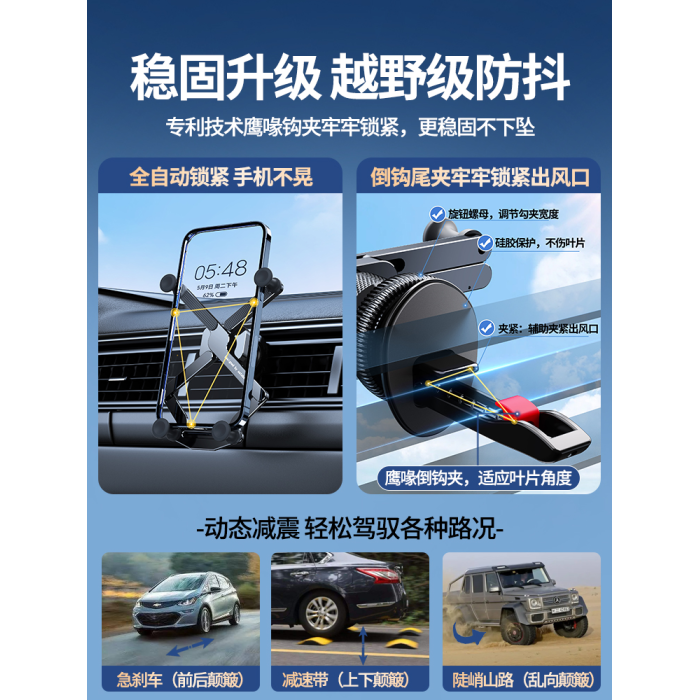 金屬車用手機支架汽車專用導航固定車內出風口卡扣式通用重力感應支撐粘貼儀表台2025新款高級小車上用的架子