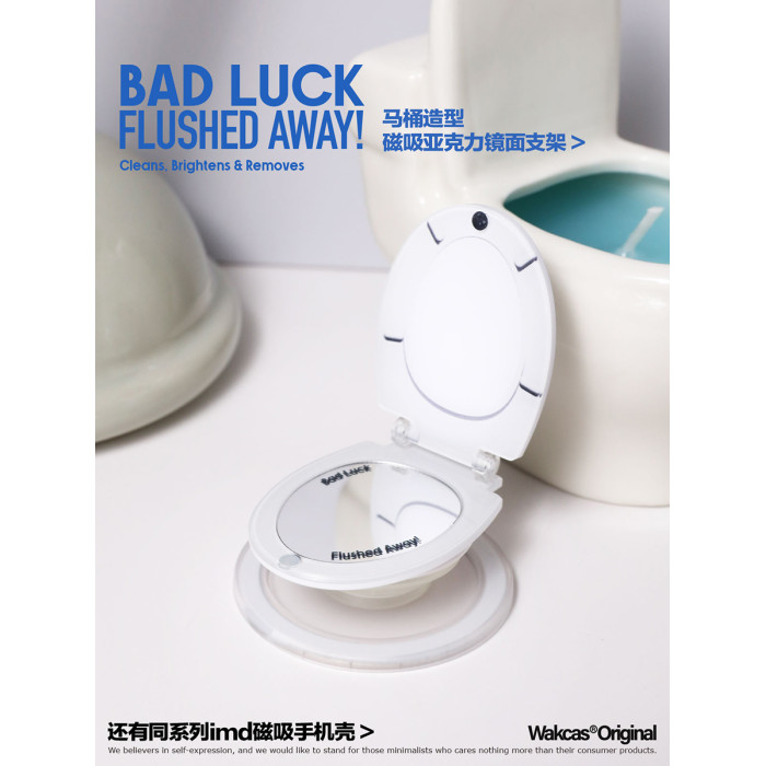 馬桶蓋個性磁吸帶鏡子支架潮流趣味原創設計新款個性磁吸手機支架
