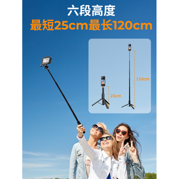 【黑影橙】1.2米延長杆三腳架+Gopro轉接頭+Pocket3轉接座