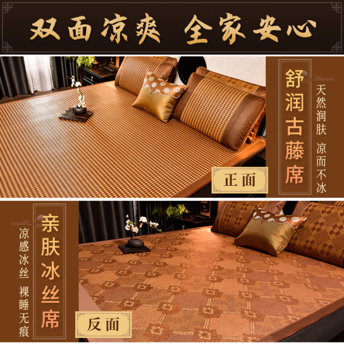 經典單面藤蓆-步步高+180*200cm涼蓆三件套