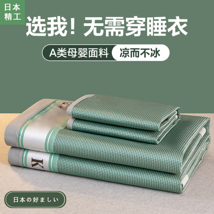 日本精工冰絲涼蓆a類母嬰級蠶絲2025新款真絲3件套夏天夏季可機洗