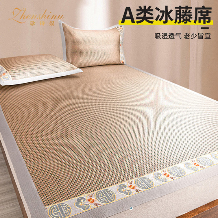 涼蓆家用2025新款冰絲蓆可水洗冰藤蓆雙面草蓆滕夏季可折曡軟蓆子
