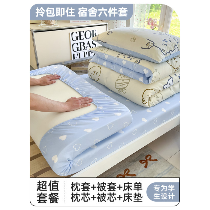 床笠款/春夏:0.9m學生六件套【三件套+枕芯+約3斤被芯+90x200床褥】