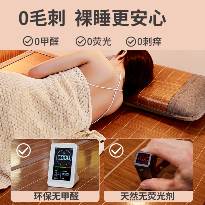 【直筒款】全碳艾草蓆『A面頭層竹青+B面涼感冰絲/配藤枕套』