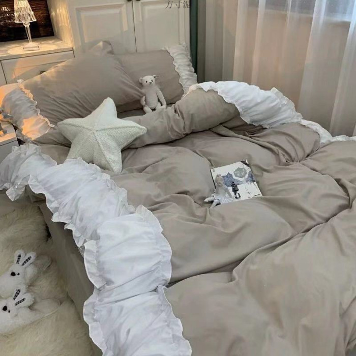 韓式ins藍色公主風少女心花邊被套床裙四件套床單學生宿舍三件套