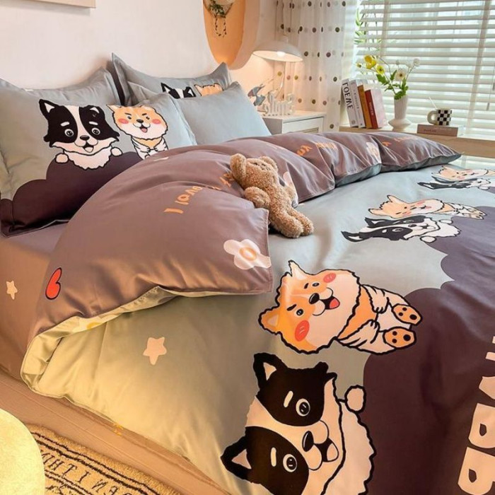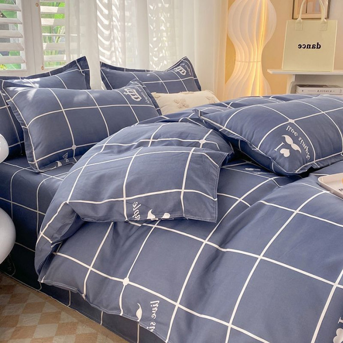 全套雙人新款印花被罩黑球靈水洗棉床單被套四件套床上用品三件套