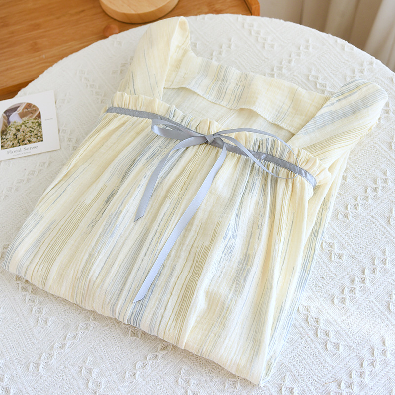 夏季新款方領短袖睡裙縐布雙層紗全棉寬松孕婦家居服睡袍浴袍