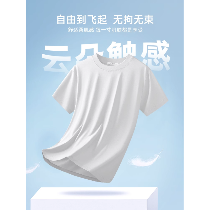 醋酸萊賽爾短袖男T恤夏季冰絲涼感半袖寬松圓領7A級抗菌防蟎上衣