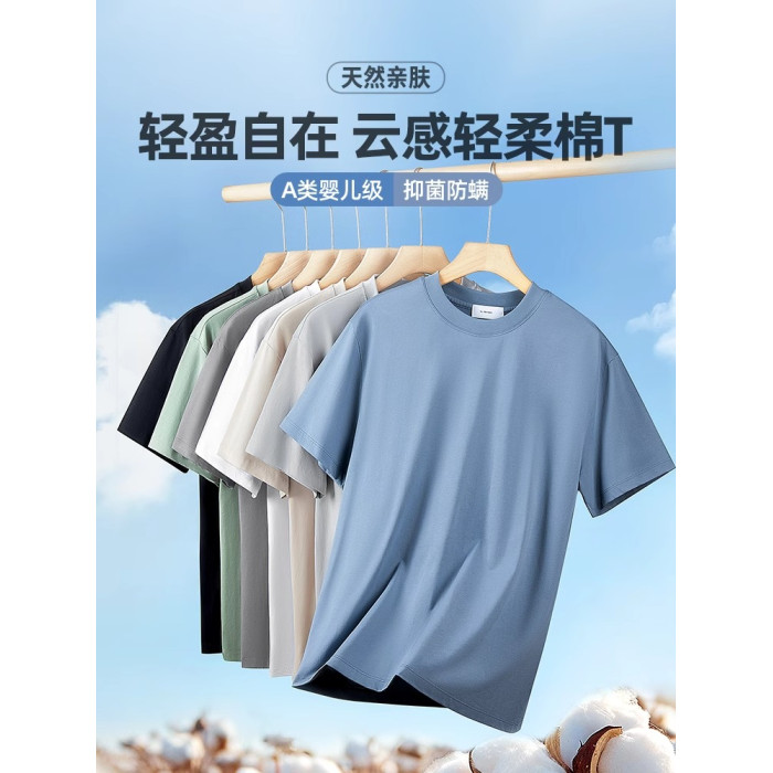 重磅廣州十三行白色男t恤夏季2025新款短袖男款男士打底衫男生T恤