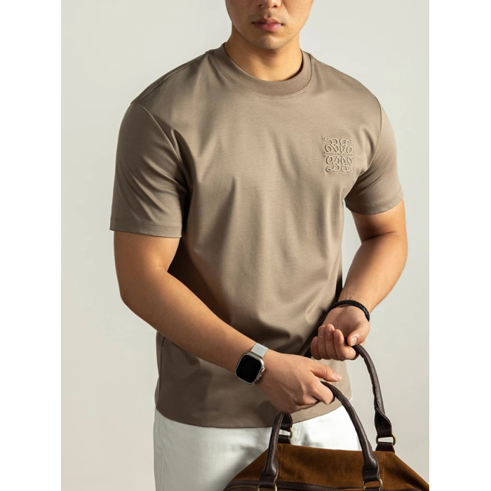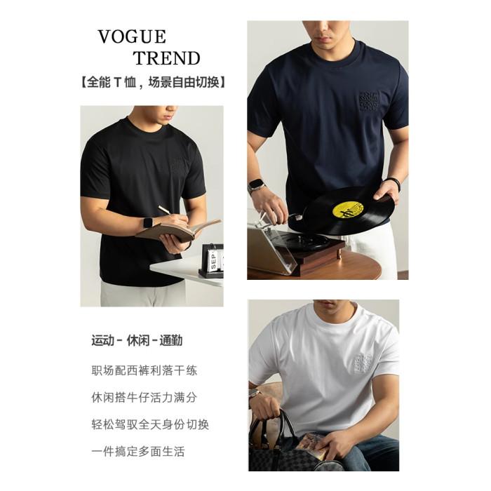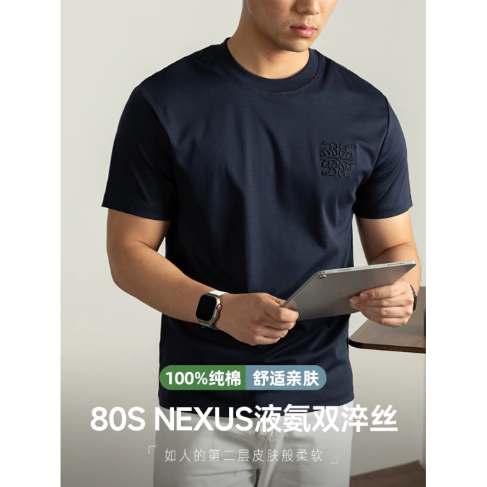 80S液氨雙淬絲冰氧短袖男T恤夏季2025新款3D刺綉涼感抑菌純棉半袖