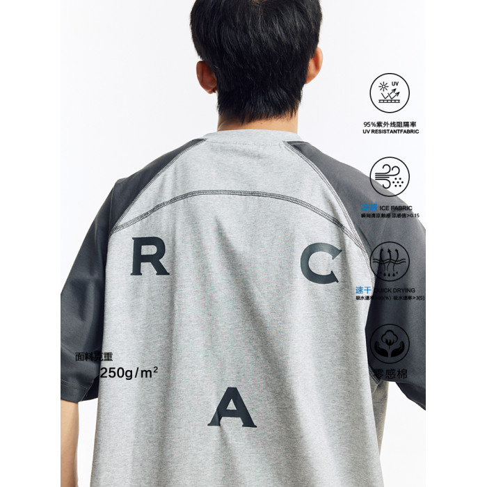 REOCHA熱呈夏季新款索羅娜速乾男t恤運動戶外明線印花插肩袖短袖