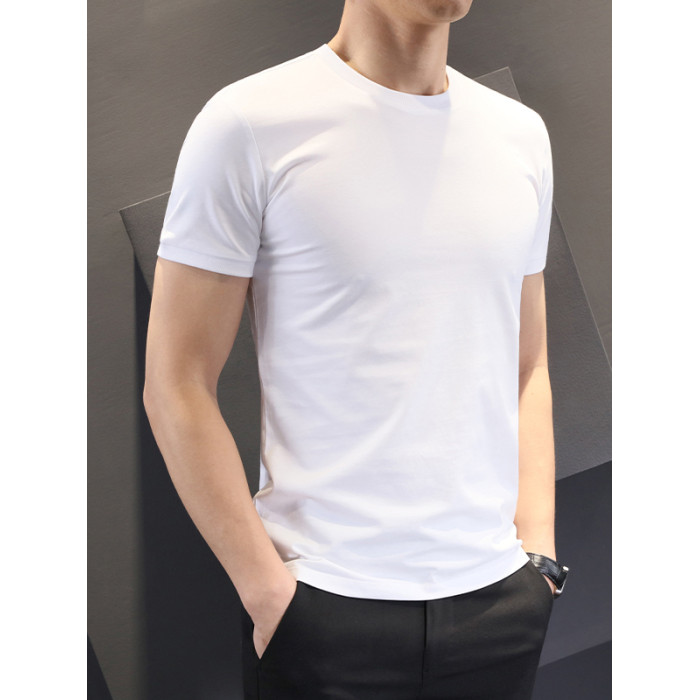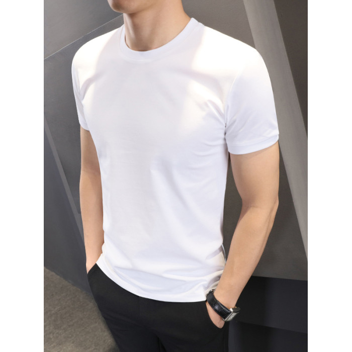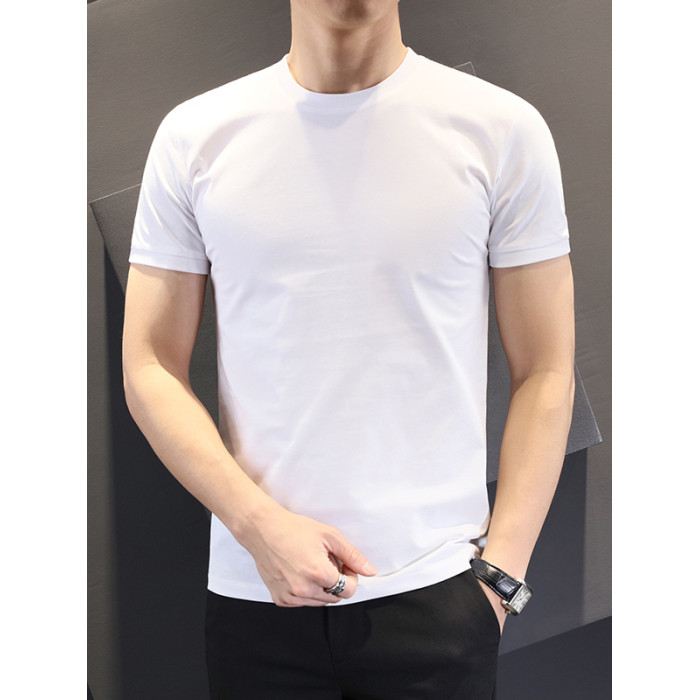 2025夏季新款純色短袖打底衫男T恤韓版圓領修身上衣潮流休閒帥氣