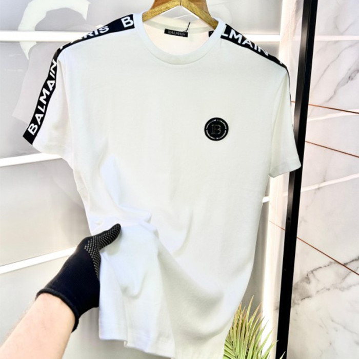 2025夏季新款巴爾曼男T恤短袖男裝棉圓領簡約字母
