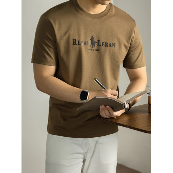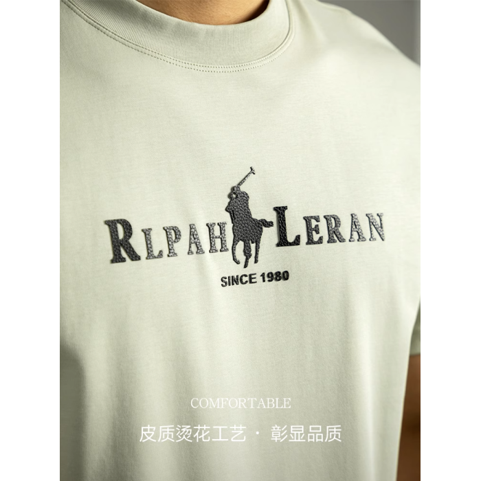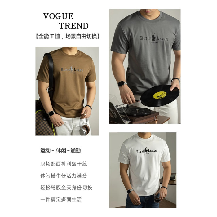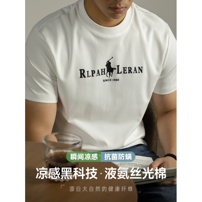液氨絲光棉短袖男T恤夏季2025新款涼感圓領半袖皮質工藝燙花上衣