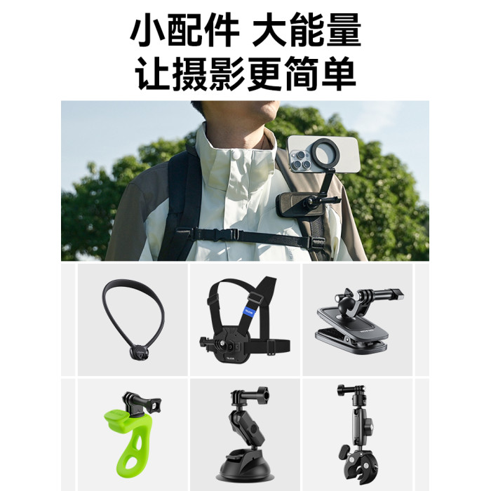 TELESIN泰迅運動相機掛脖支架胸帶後背包夾車管夾車用吸盤支架轉磁吸手機支架配件