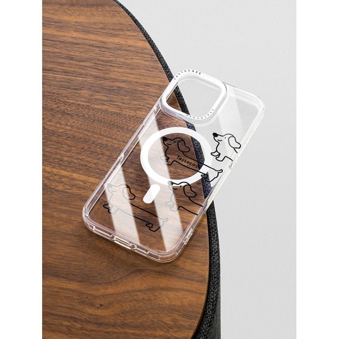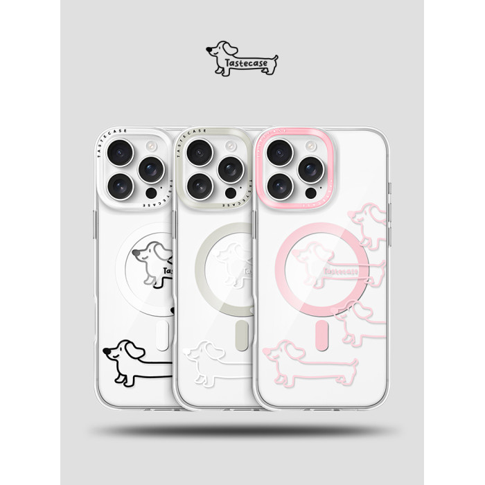 Tastecase臘腸狗透明磁吸手機殼適用於蘋果iPhone16ProMax/15Pro新款MagSafe防摔保護殼原創可愛磁吸手機支架