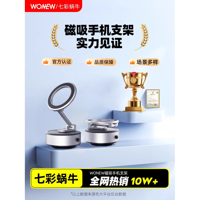 wonew七彩蝸牛車用電動自拍真空磁吸手機支架吸盤吸附導航專用拍照神器桌面吸力手機拍攝迷你可攜式旅遊vlog
