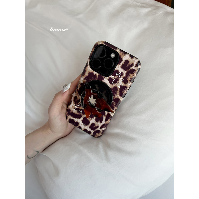 Lumos「finger指尖飛鳥」時髦單品!豹紋銀閃mirror磁吸手機殼支架