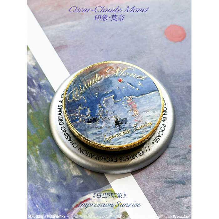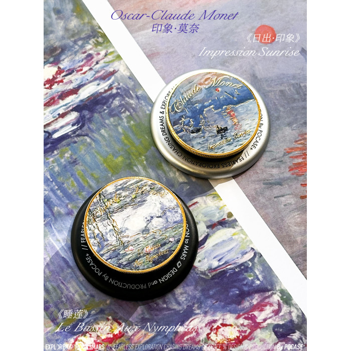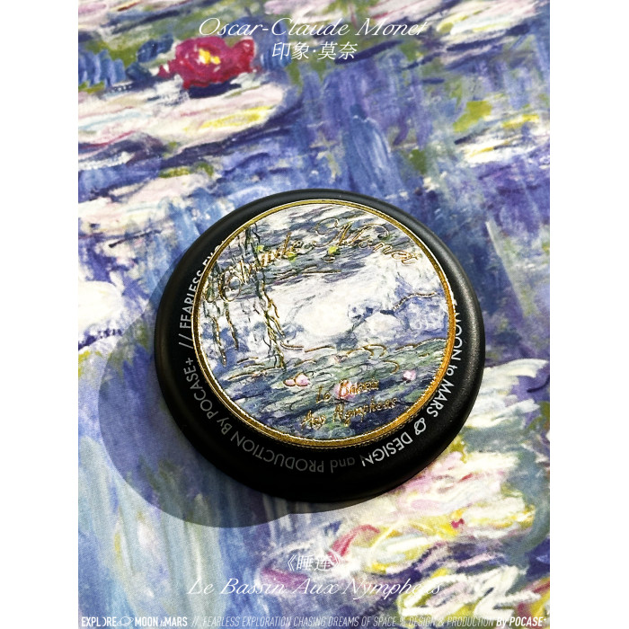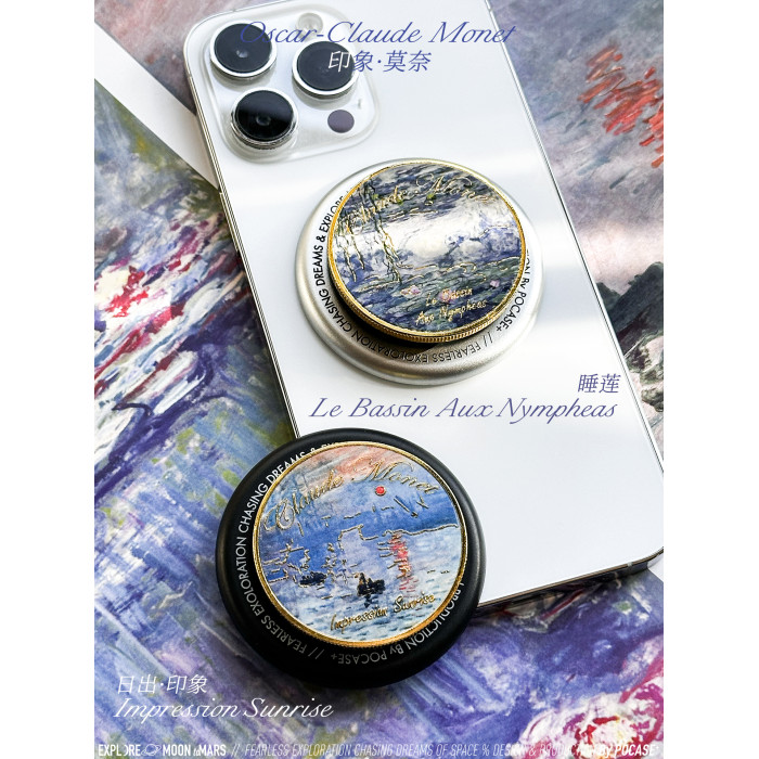 “莫奈印象”睡蓮日出時刻油畫琺瑯滴膠面蓋磁吸手機支架藝術美術