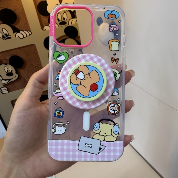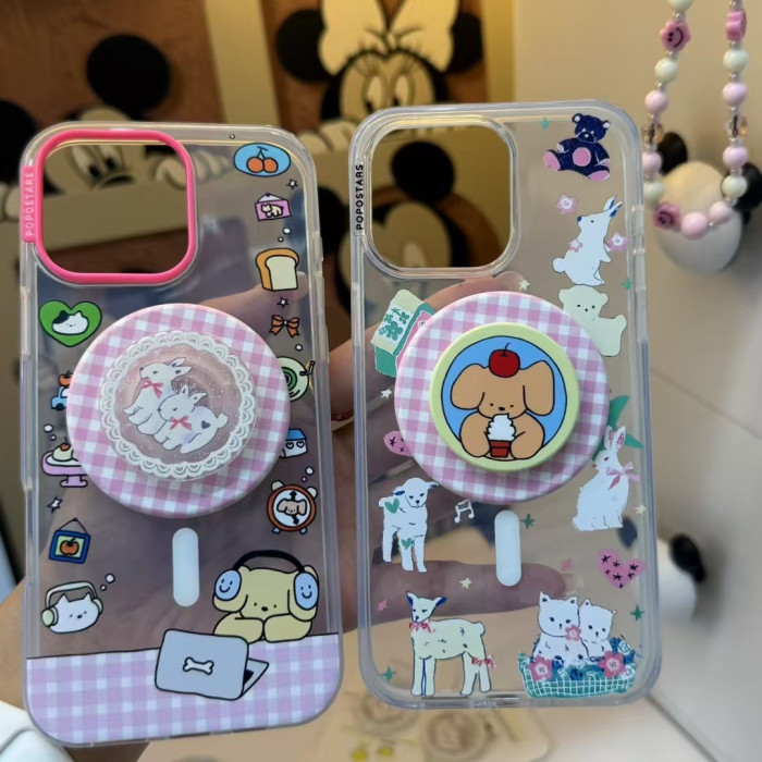 【新青青呼吸-泡泡騷高版強磁吸手機殼】幸福小狗 小兔的夢微風小狗蘋果手機支架磁吸啪嗒平替適配popsockets