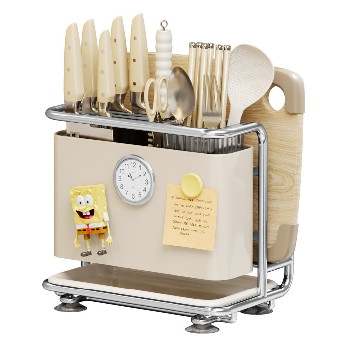 刀架砧板一體架不鏽鋼廚房置物架多功能磁吸筷子砧板架刀具收納架