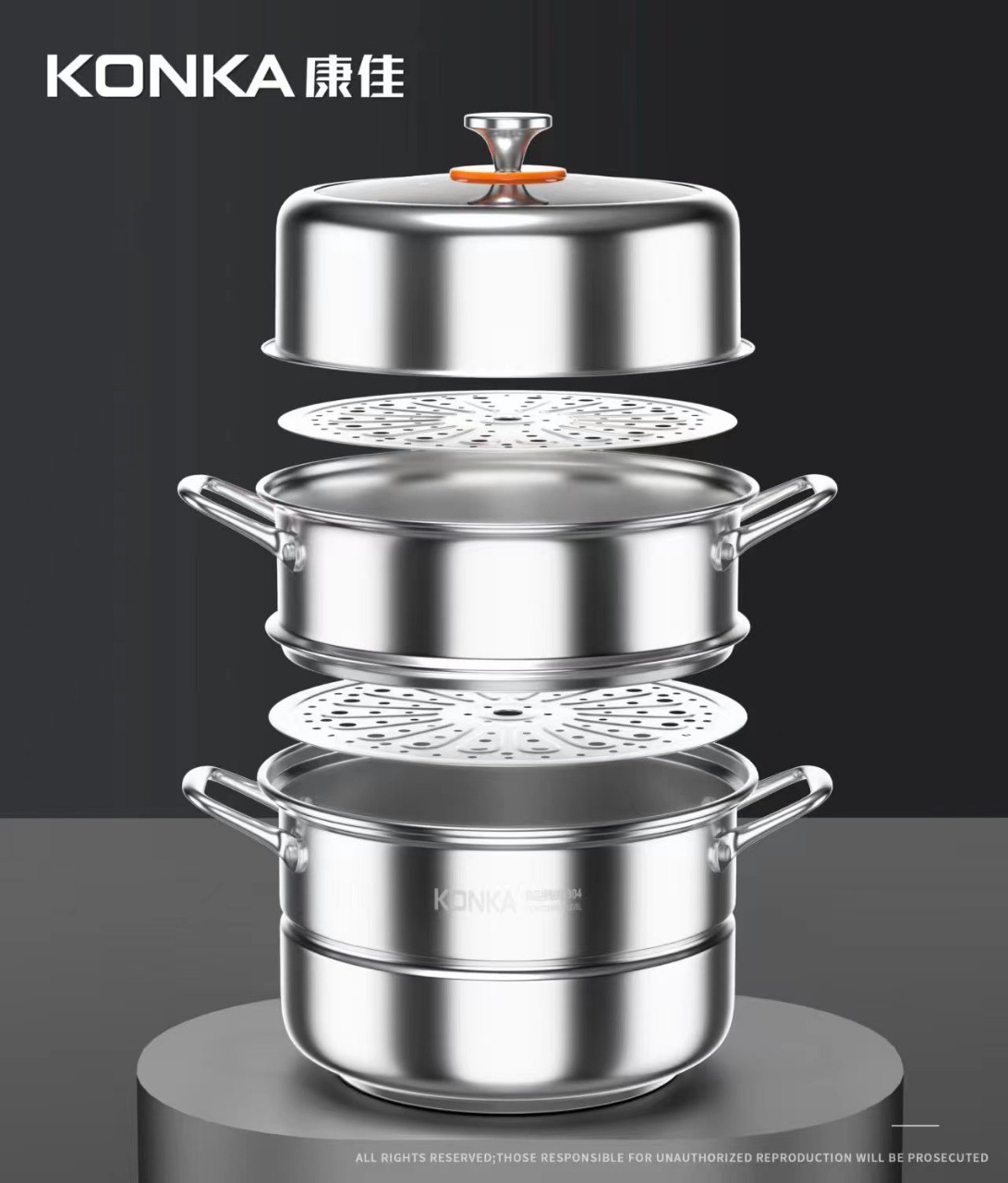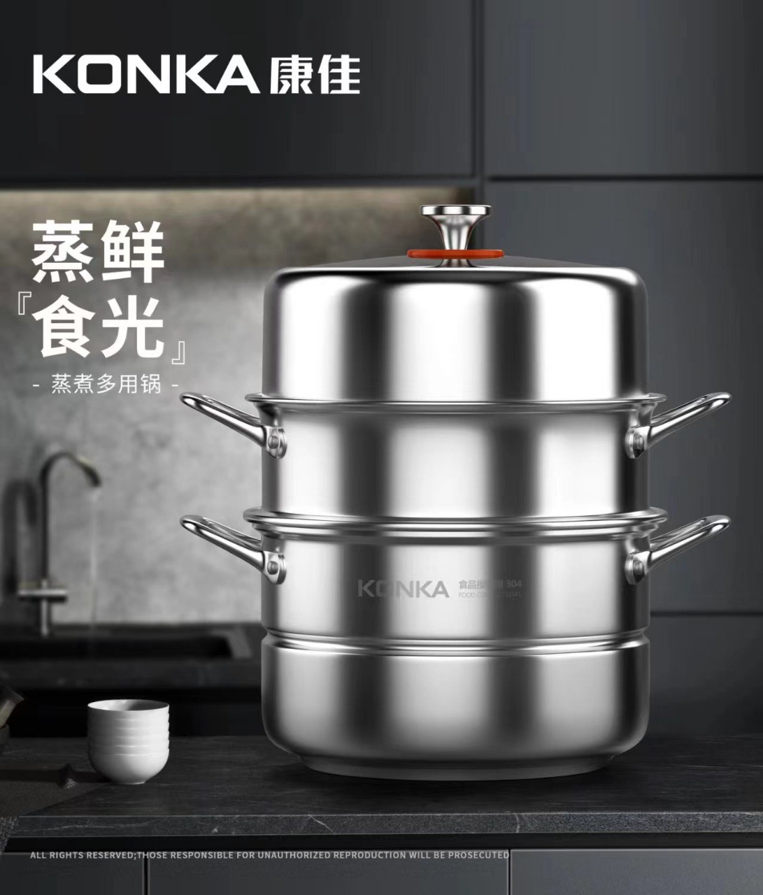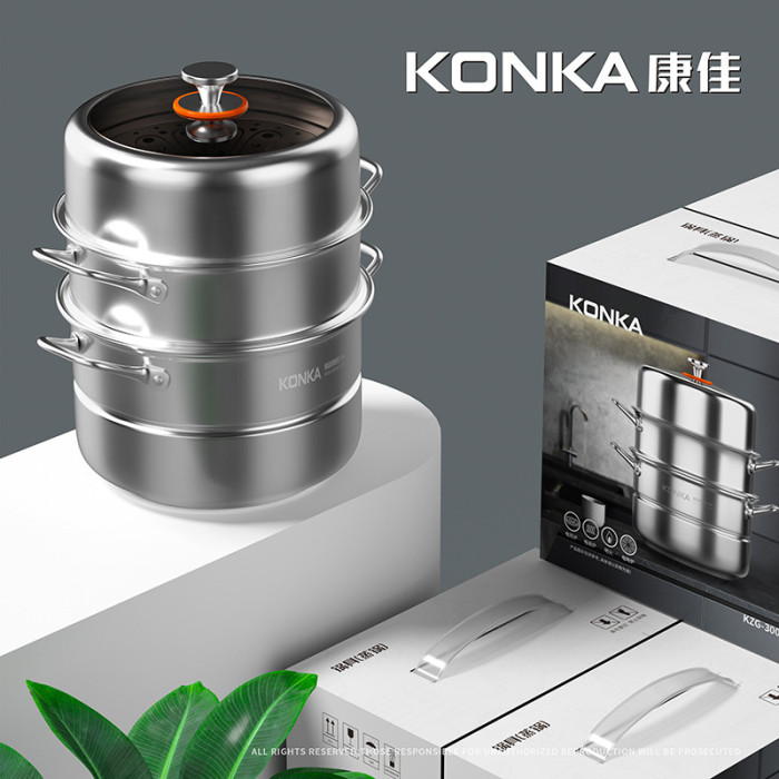 康佳304不鏽鋼蒸鍋加厚加大三層家用多功能蒸煮鍋瓦斯電磁爐通用