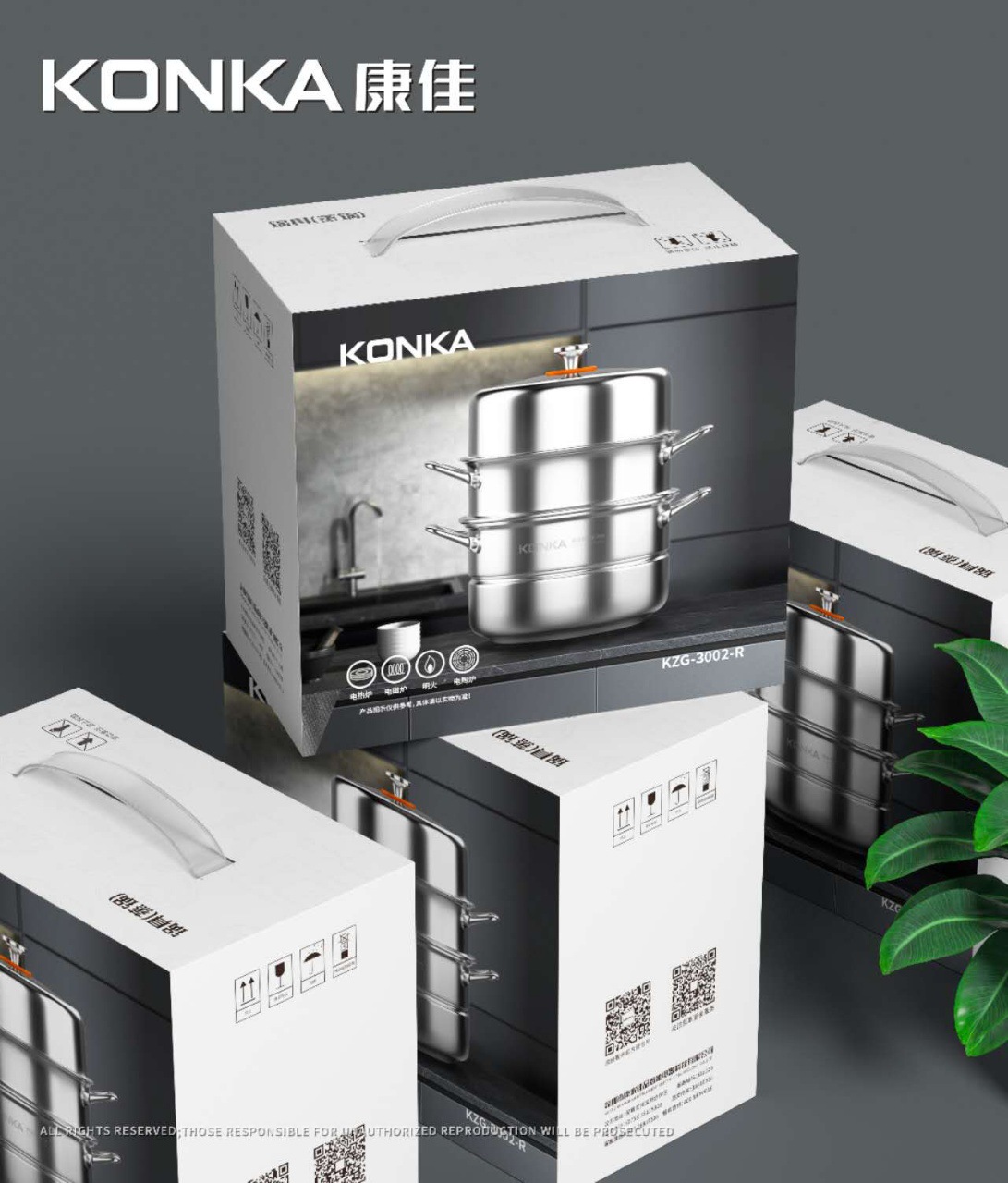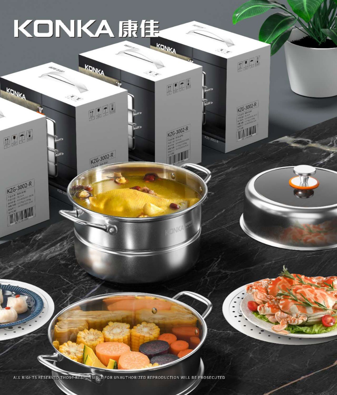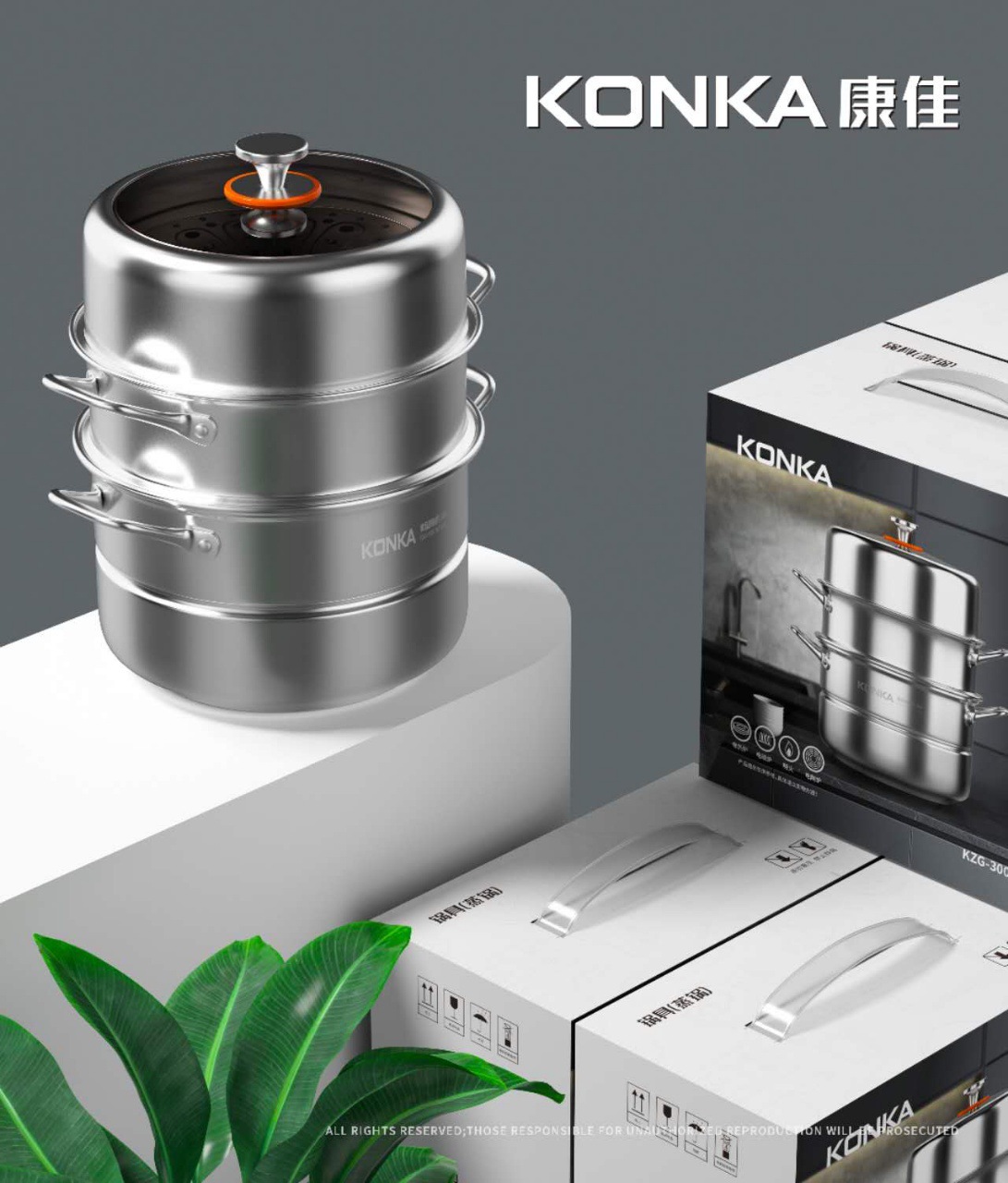康佳304不鏽鋼蒸鍋加厚加大三層家用多功能蒸煮鍋瓦斯電磁爐通用