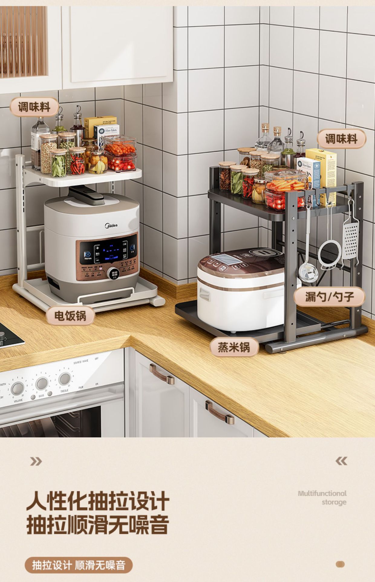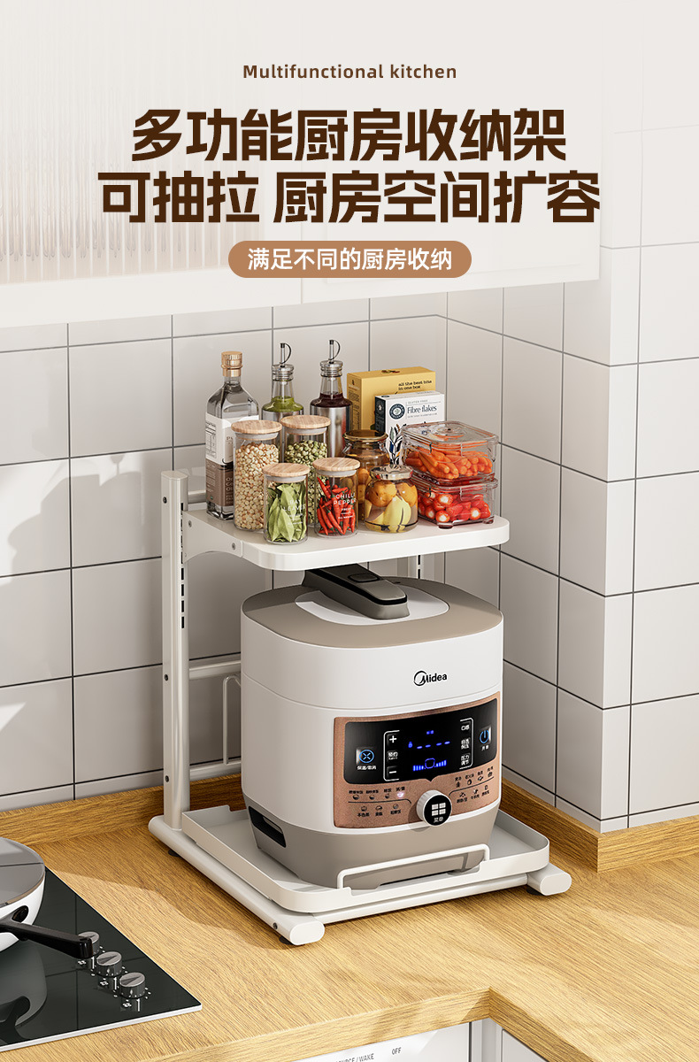 廚房置物架多功能電飯煲烤箱專用架可抽拉台面微波爐架電器收納架