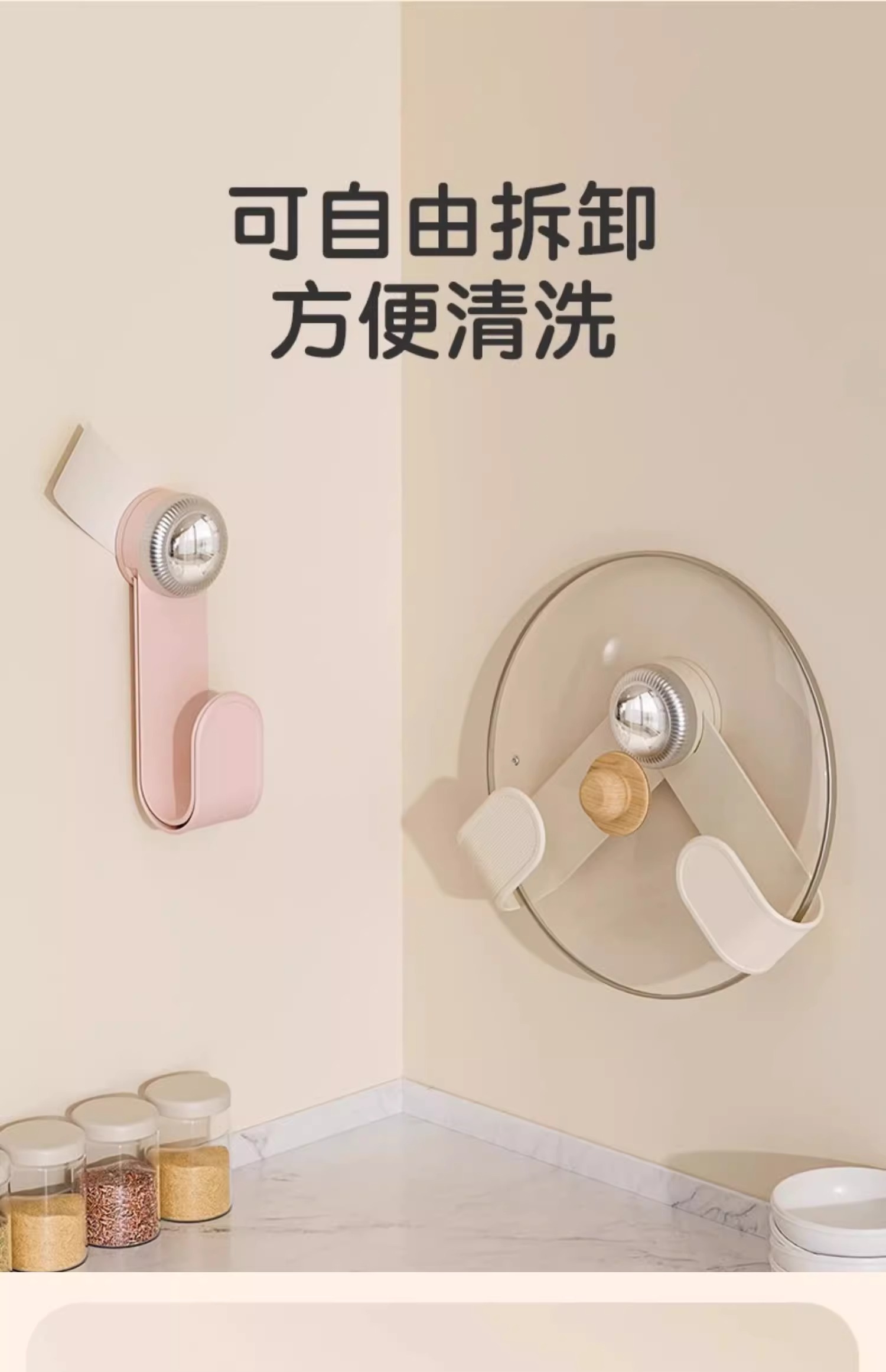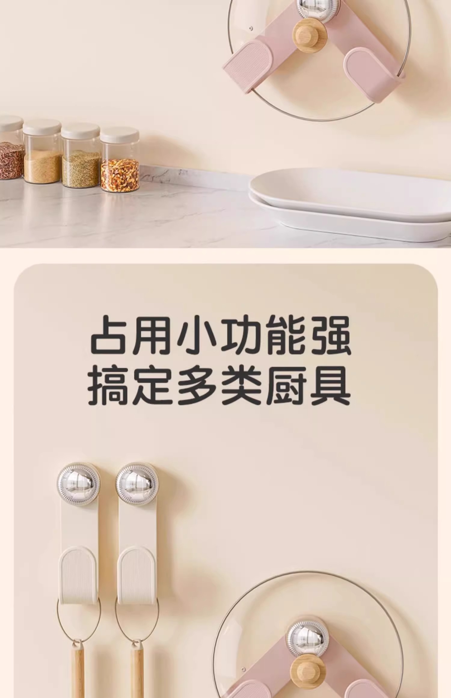 奶油吸盤旋轉鍋蓋架壁掛式免打孔廚房置物架收納掛架菜板架砧板架