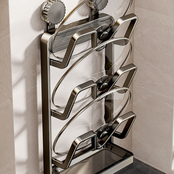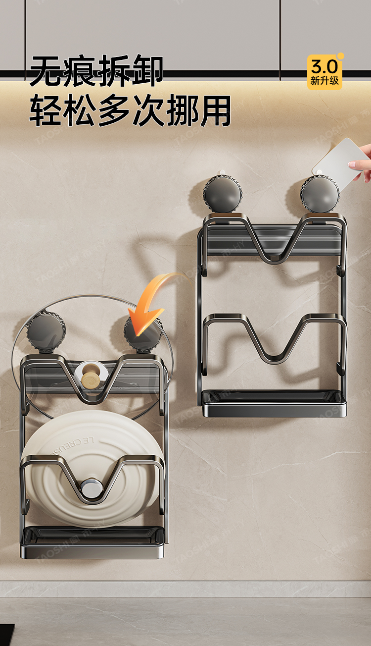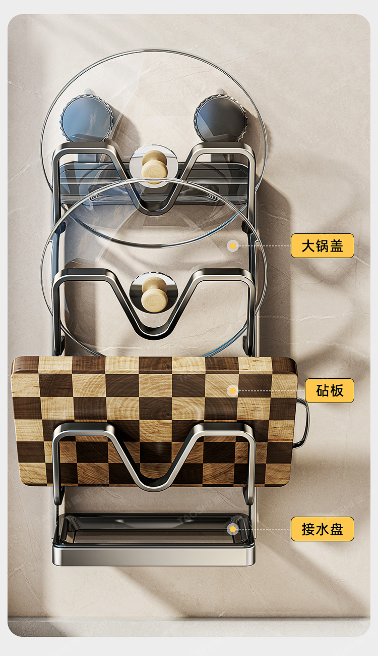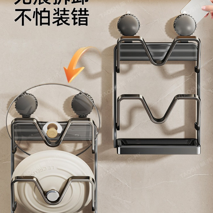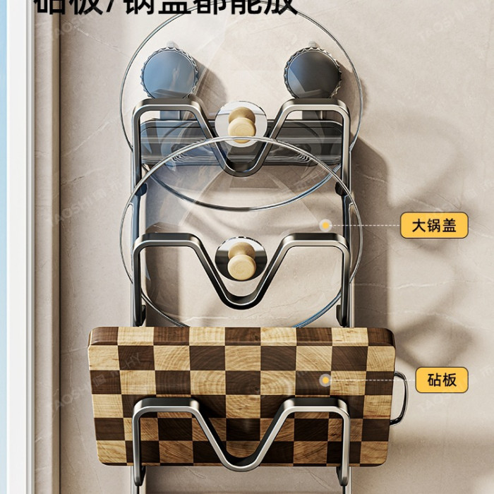 吸盤鍋蓋架壁掛式免打孔廚房置物架多功能收納架菜板多層砧板架子