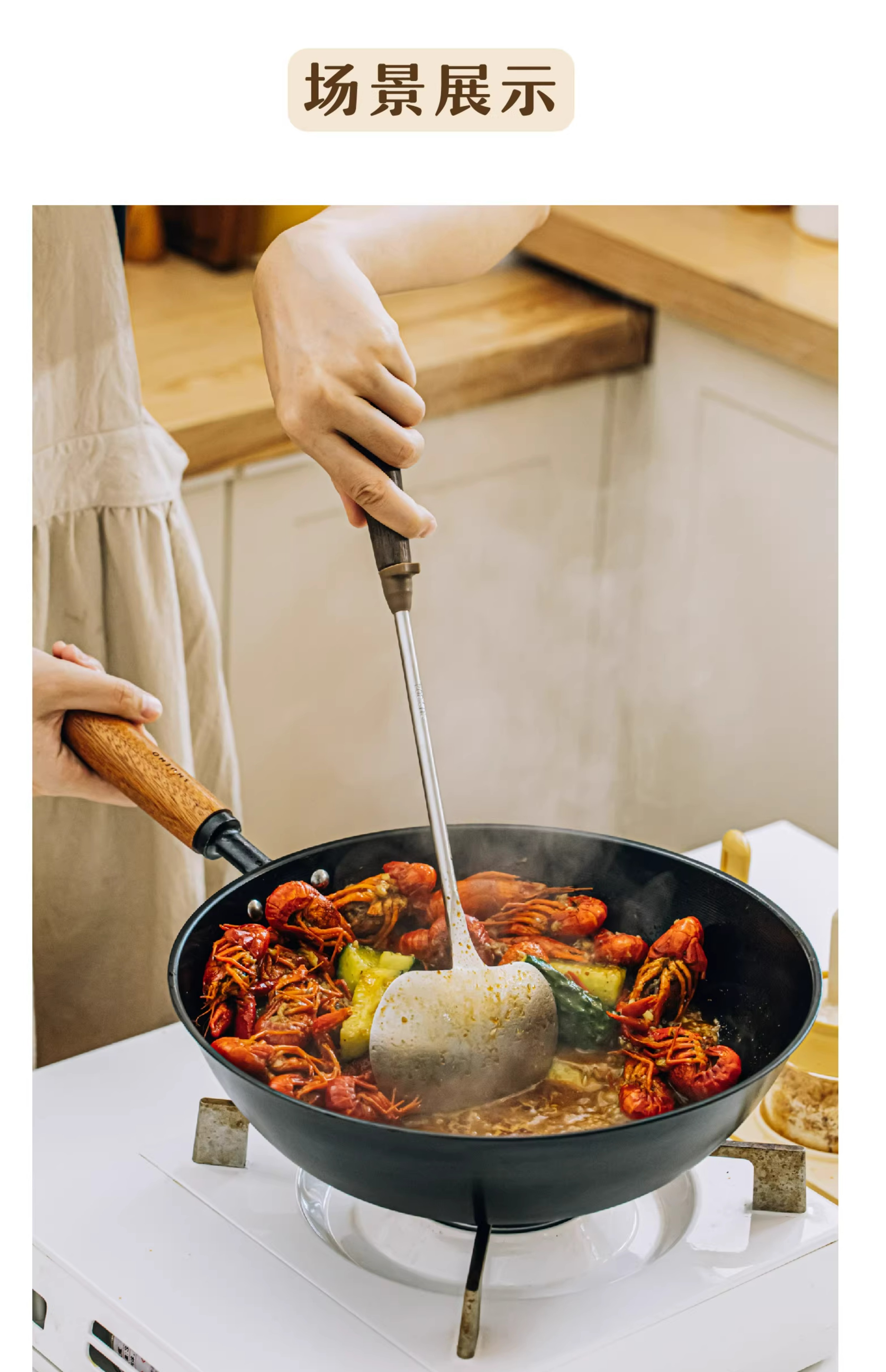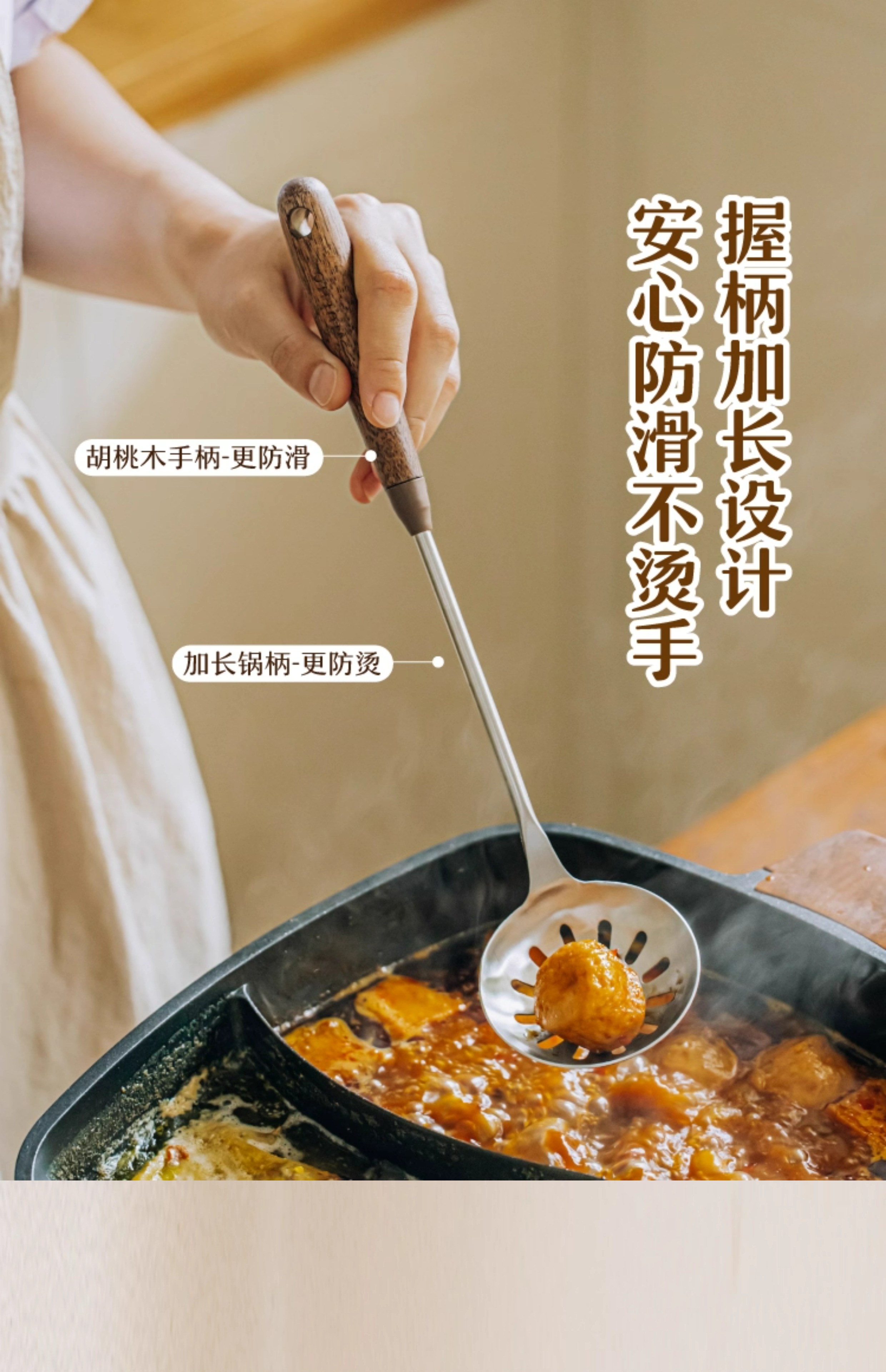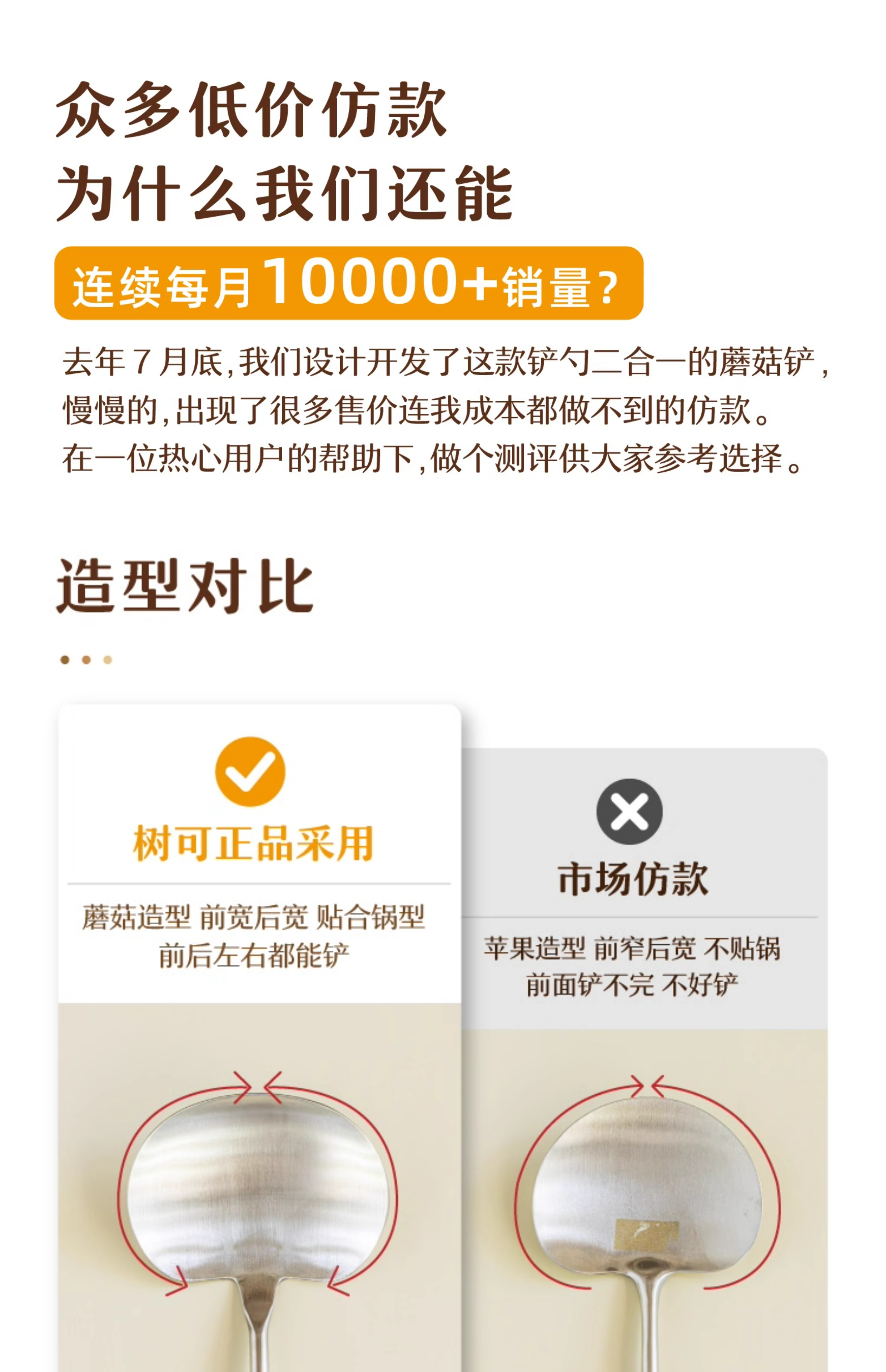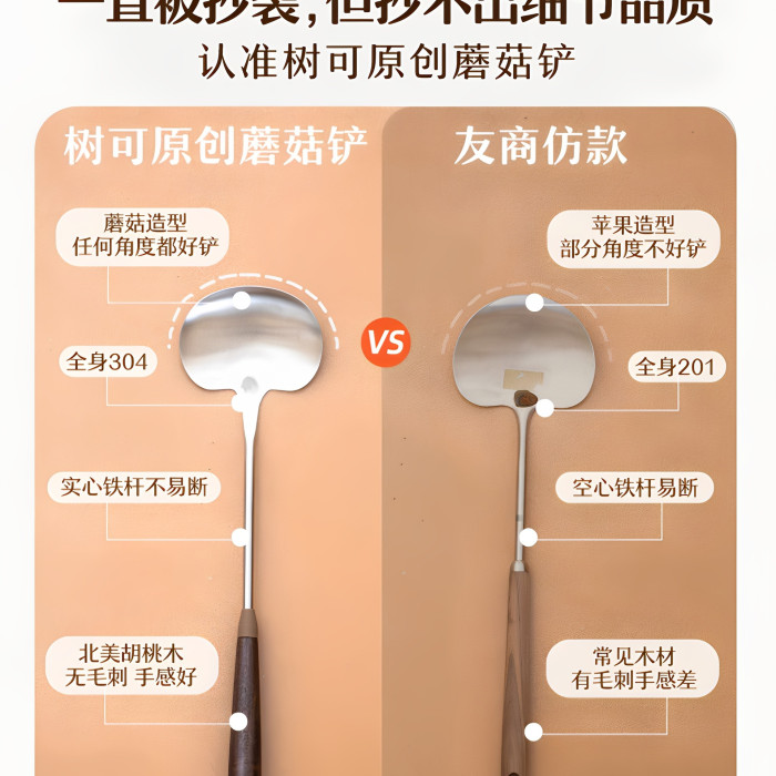 樹可胡桃木蘑菇鏟子鍋鏟不鏽鋼小號家用炒勺鐵鏟炒菜的勺鐵鍋