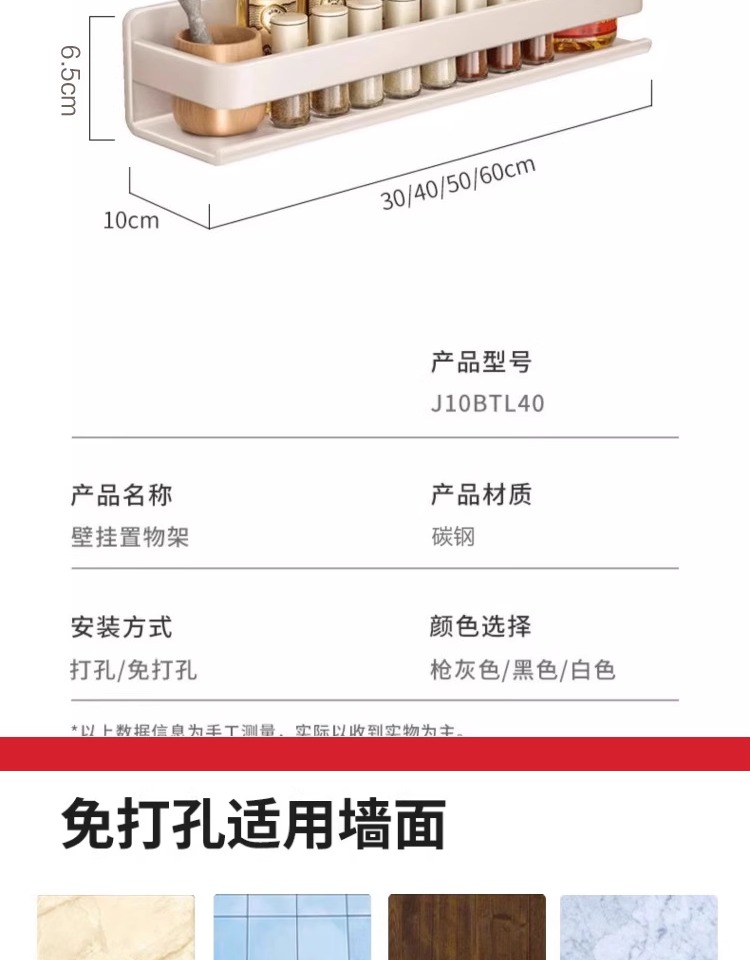 白色廚房置物架免打孔壁掛調料架調味料牆上調味品掛架家用收納架