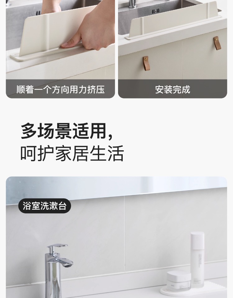 meelyhome新款家用廚房水槽擋水板矽膠防水隔板擋水條水池防濺板