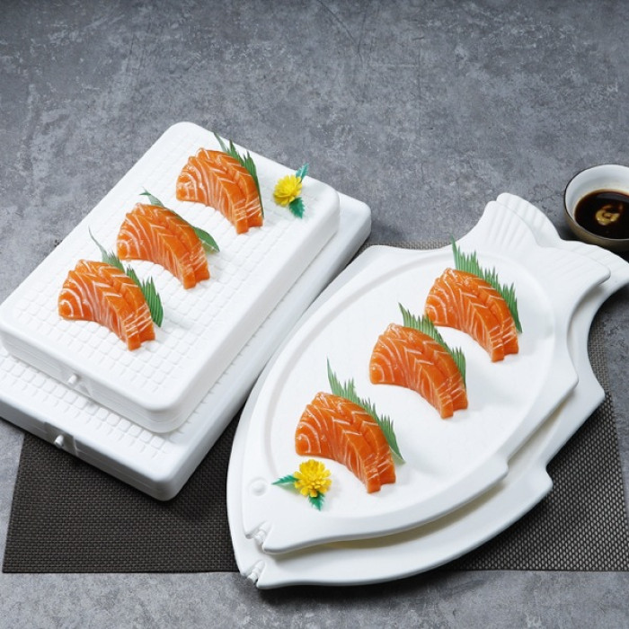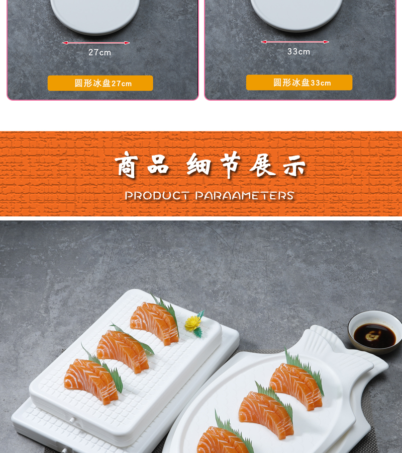 刺身冰盤塑膠長方形魚生冰板圓形三文魚冰碟注水刺身盤子商用