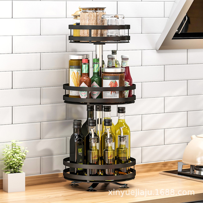 可旋轉台面廚房調料瓶置物架調味品油鹽醬醋瓶轉角多層廚房收納架