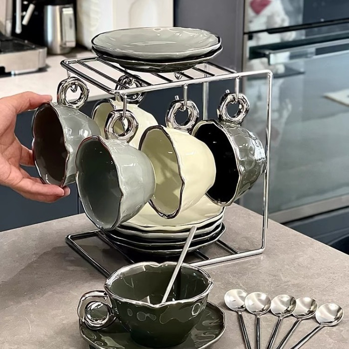 創意歐式輕奢復古咖啡杯架掛架水杯架收納架倒掛瀝水架辦公室家居