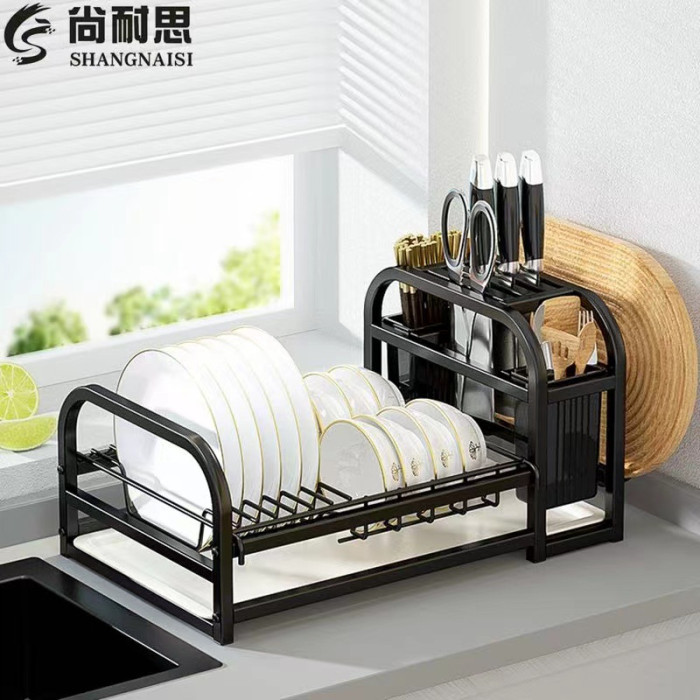 碳鋼廚房置物架碗碟盤收納架子晾洗放碗瀝水架插刀架砧板架多功能