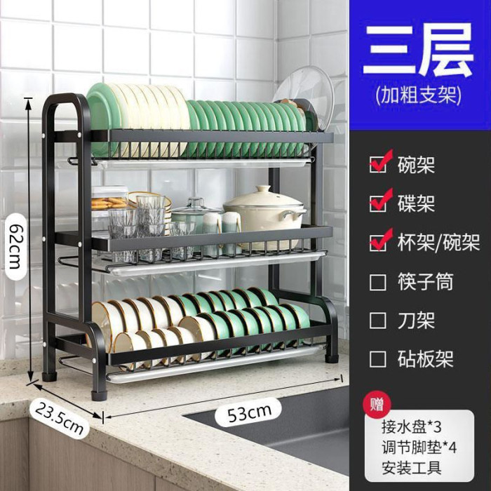 台面多層碗碟架碗盤收納架瀝水架家用廚房多功能放碗盤置物架子