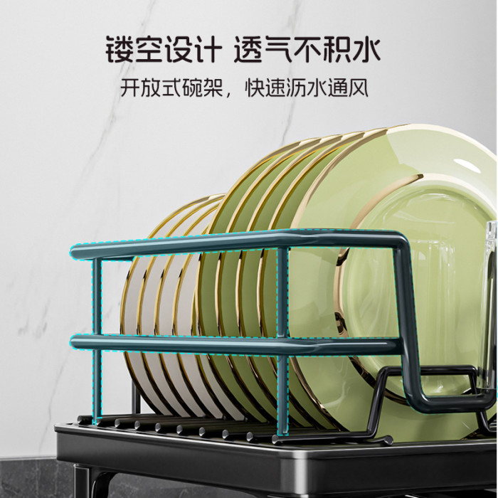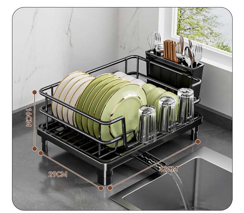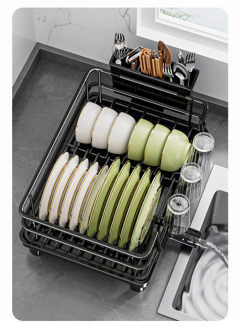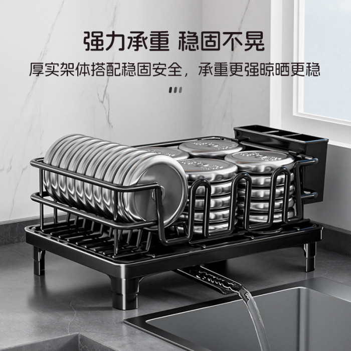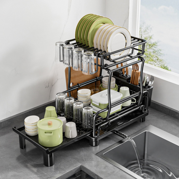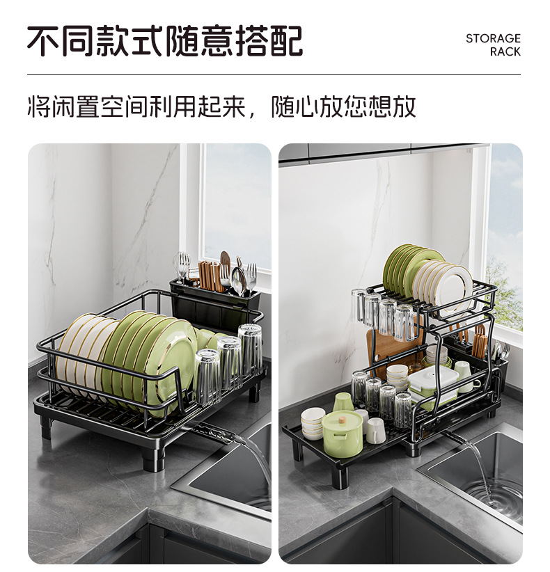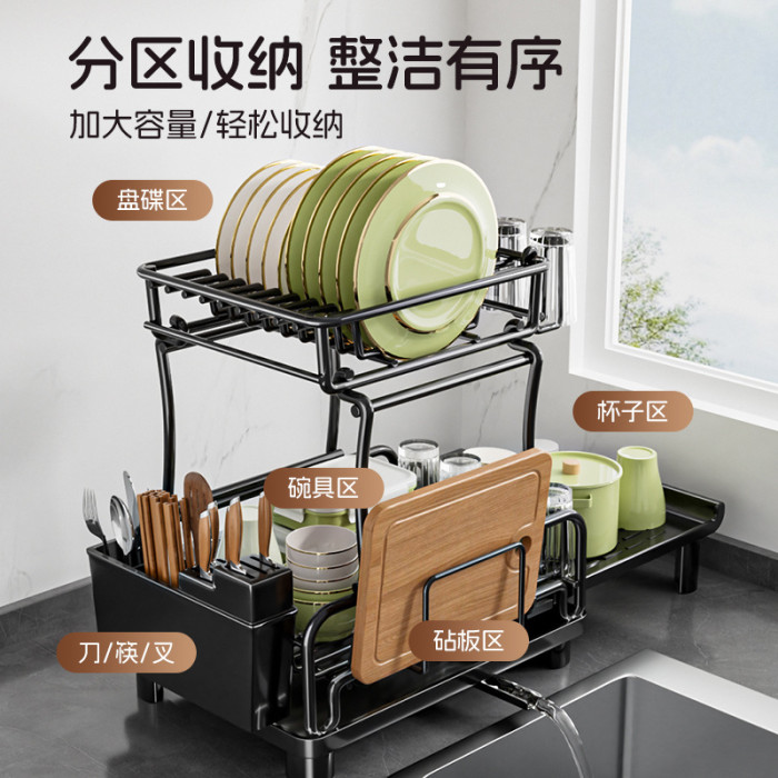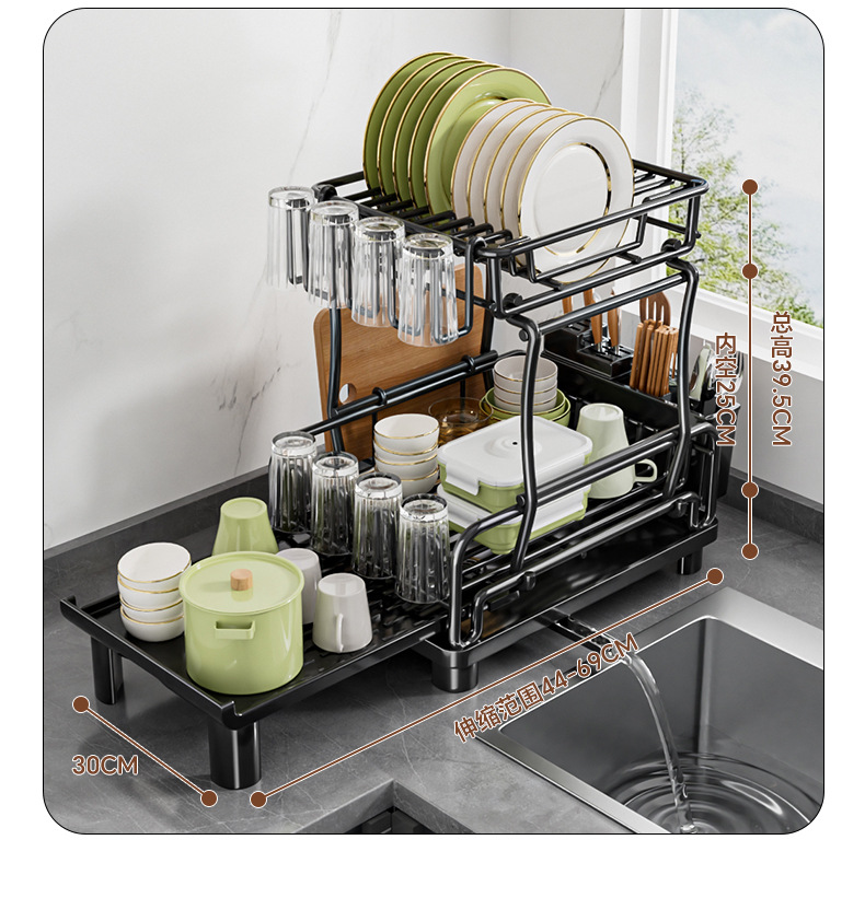 temu雙層碗碟架 可伸縮廚房餐盤瀝水架子