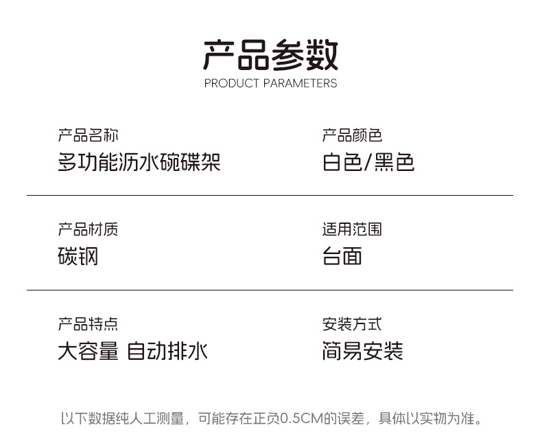 | 層數(規格) | 木棍碗碟架+筷子筒+抹布架*黑色 |