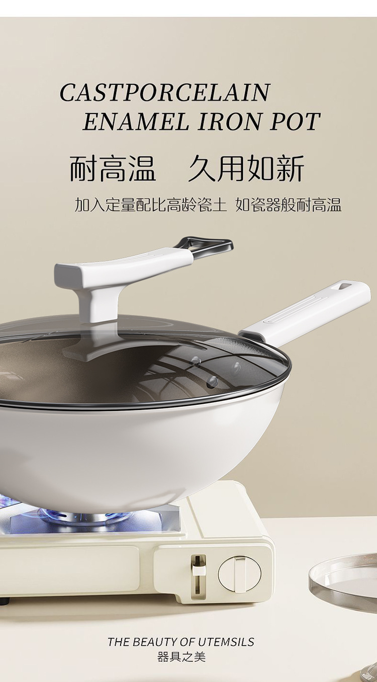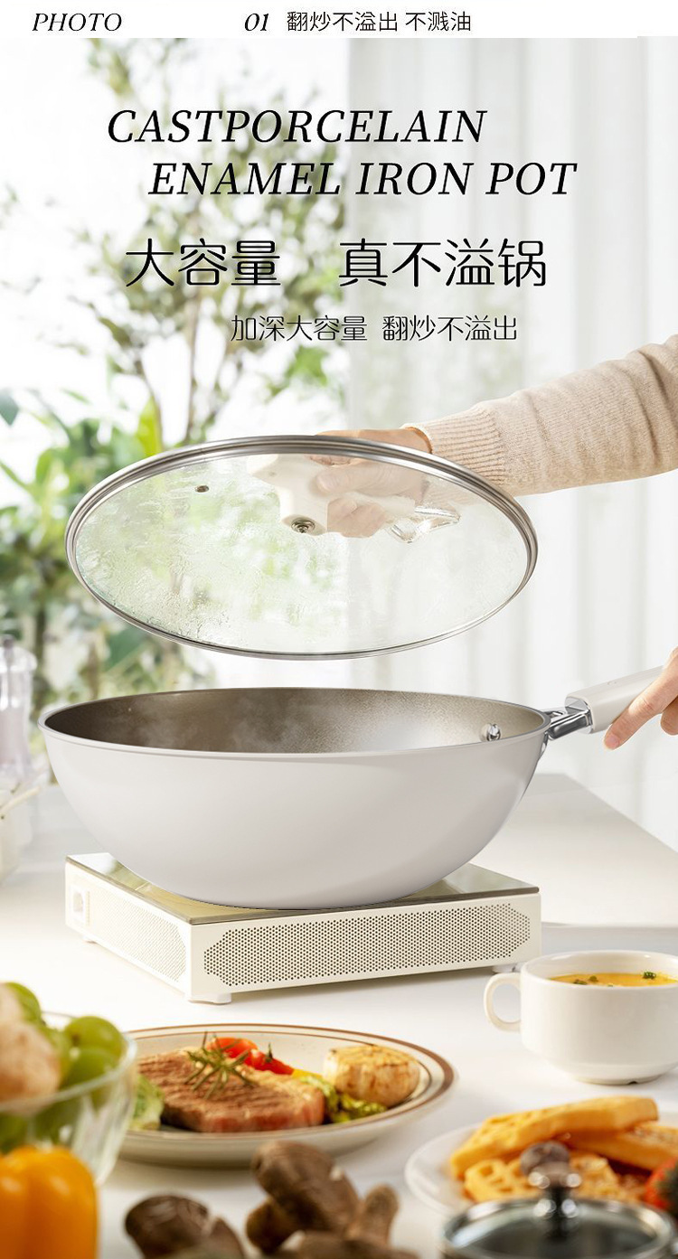 顔色 34-嬭白炒鍋+鋼化蓋+矽膠鏟+海綿擦+蒸籠