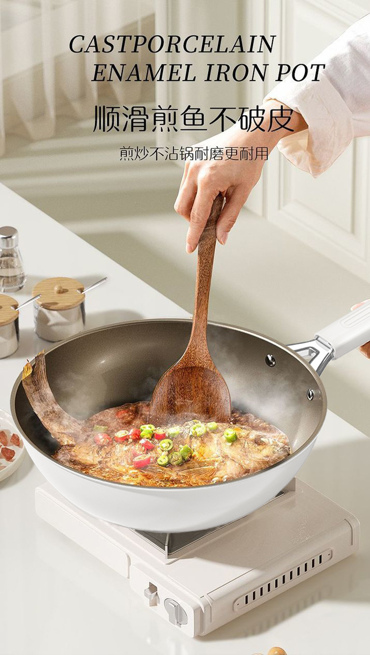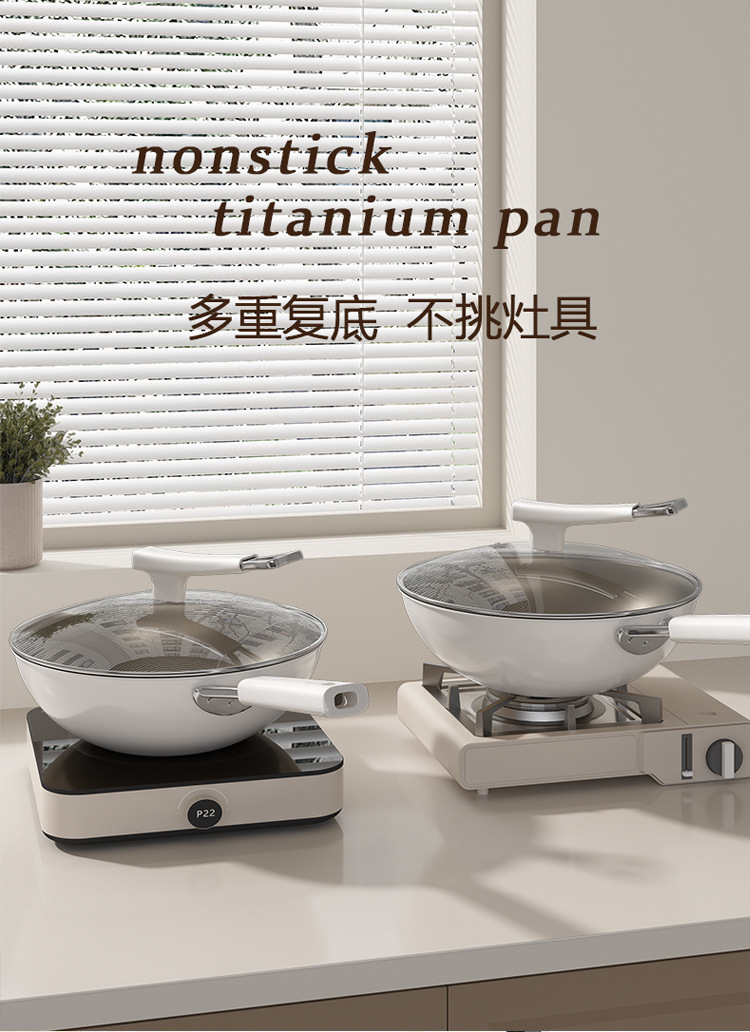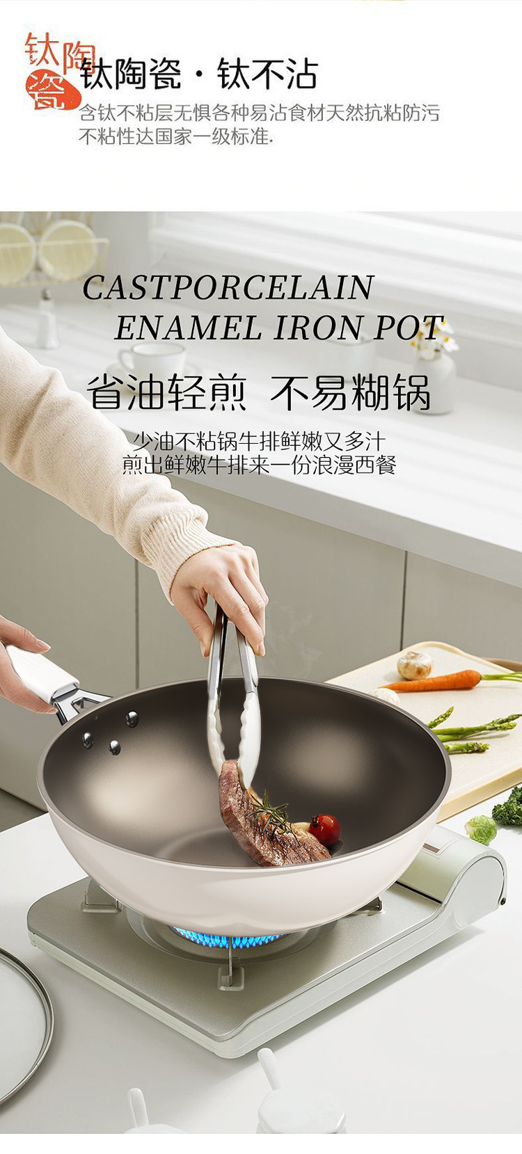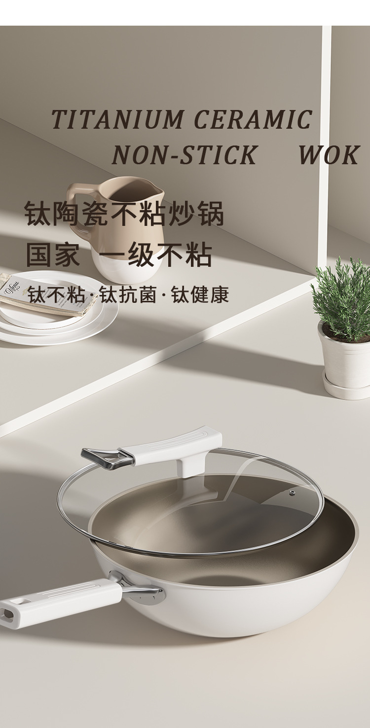 無塗層不沾鍋陶瓷炒鍋家用聚油不沾鍋瓦斯電磁爐用鈦鍋炒菜鍋