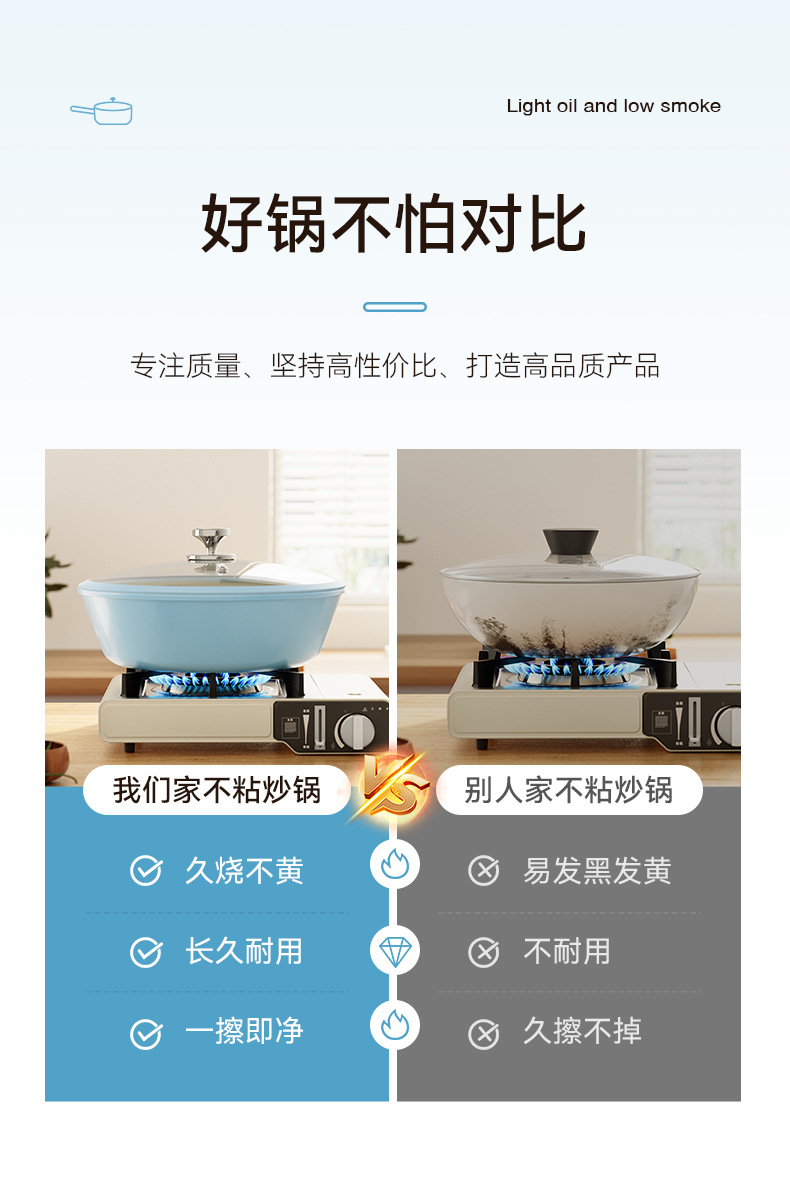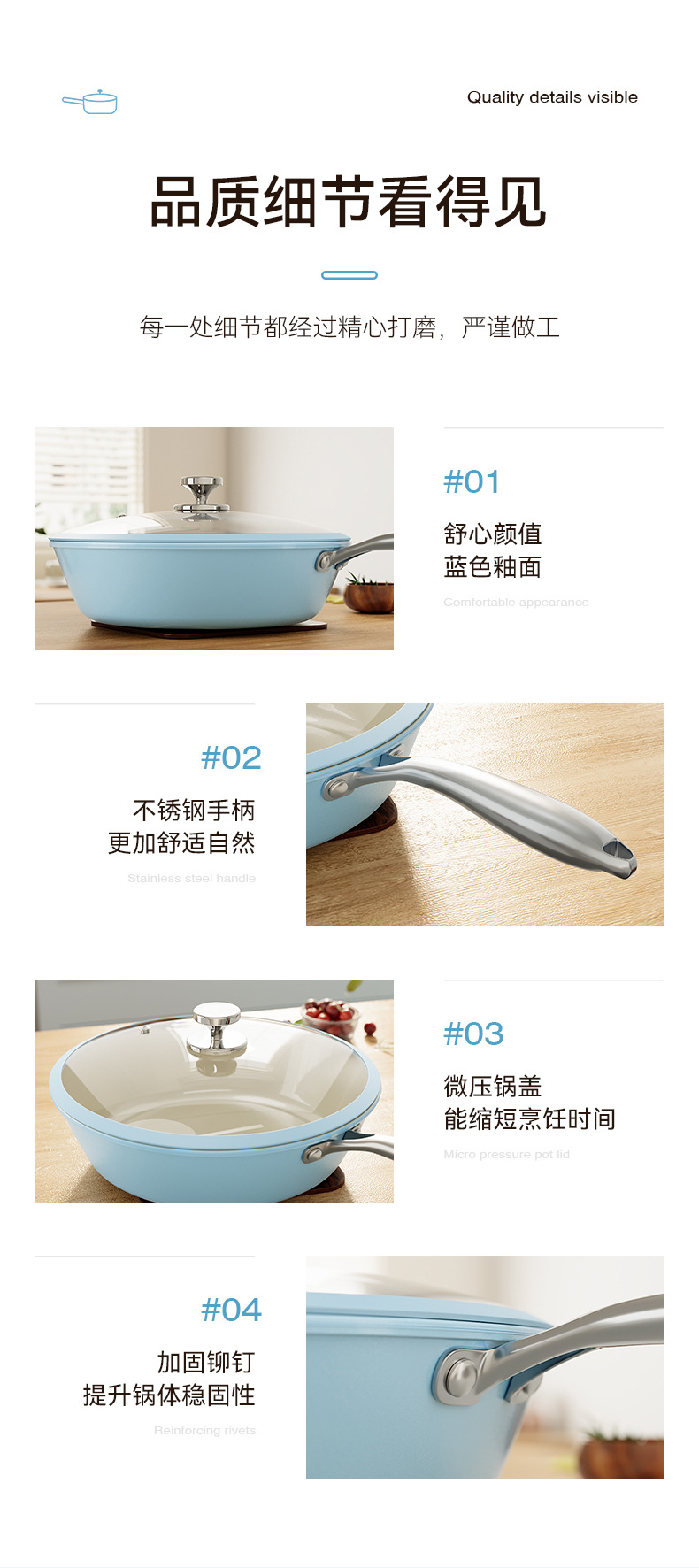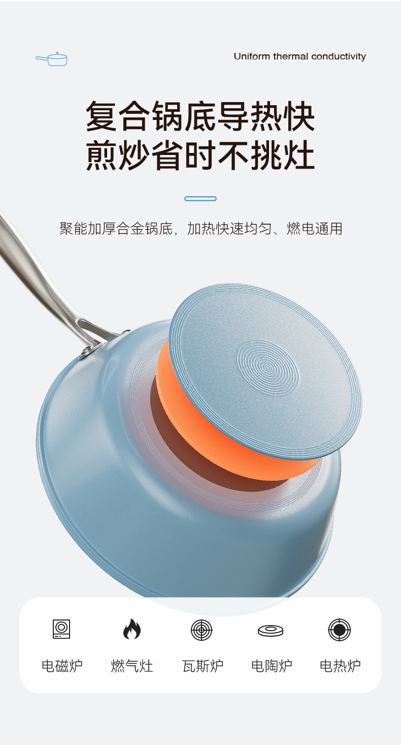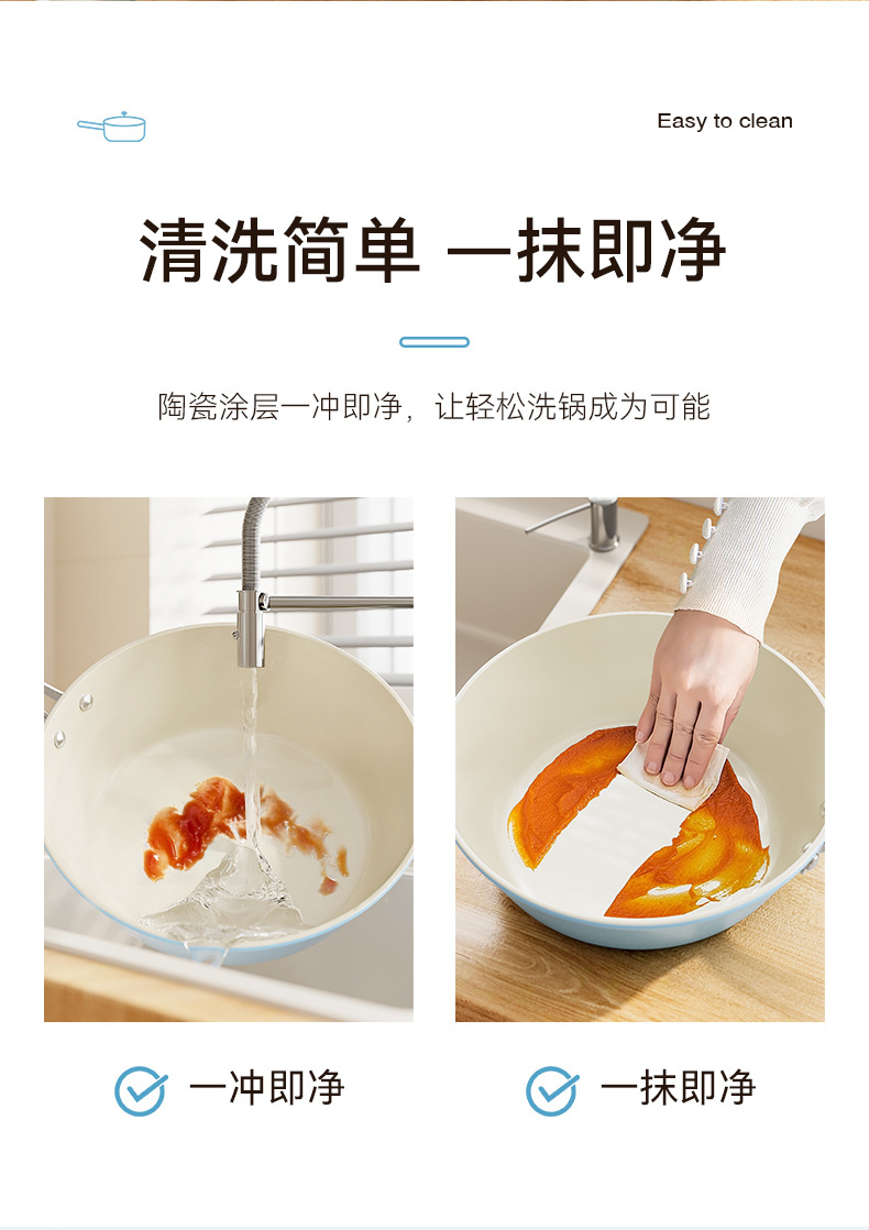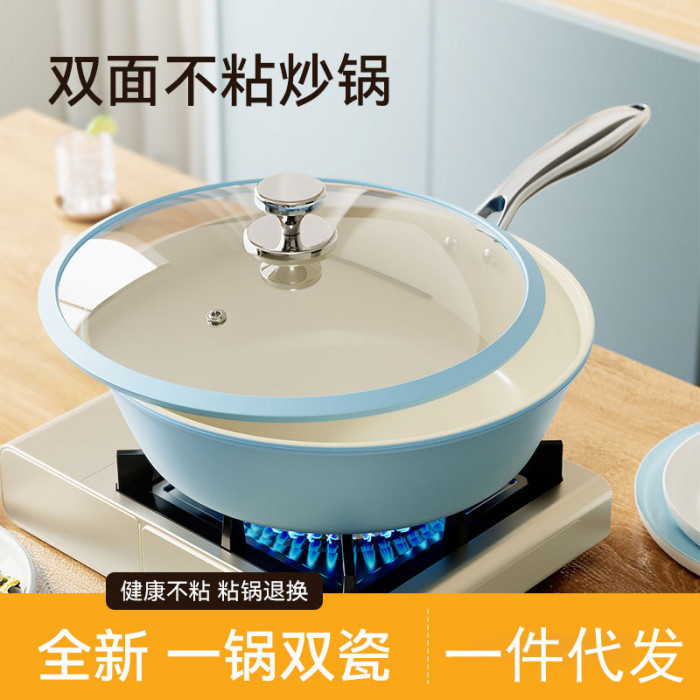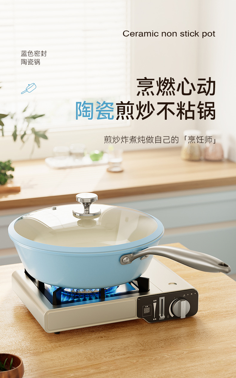 新款陶瓷不沾鍋多功能炒鍋霧霾藍煎鍋家用炒菜鍋通用爐灶平底鍋