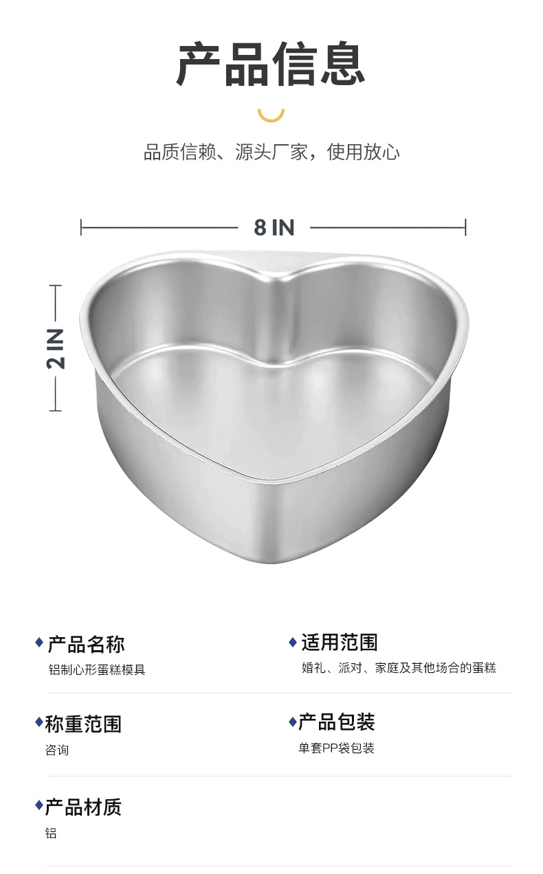 8英寸鋁製心形蛋糕模具,適用於婚禮派對家庭及其他場合的蛋糕