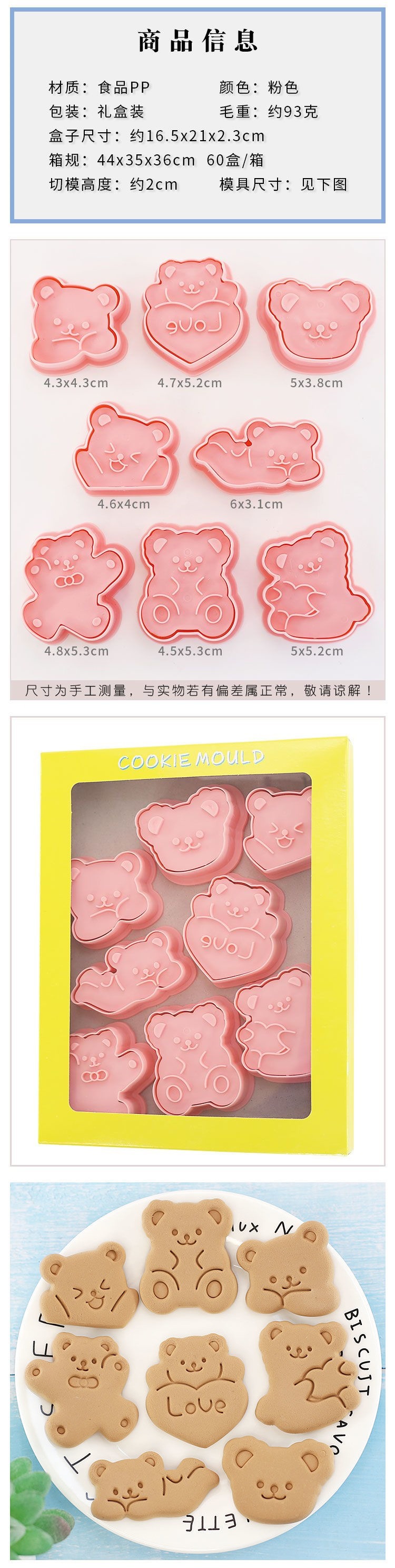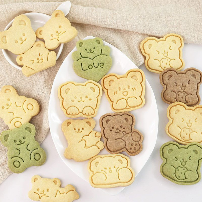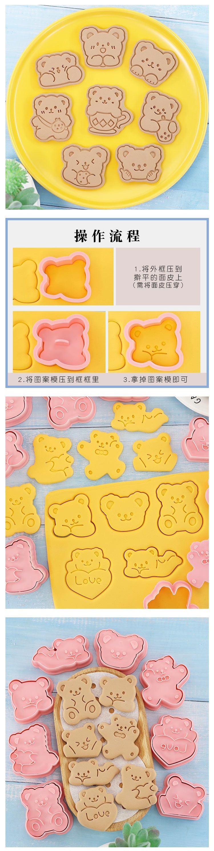 可愛小熊卡通餅乾模具3d立體按壓兒童親子diy曲奇家用烘焙工具
