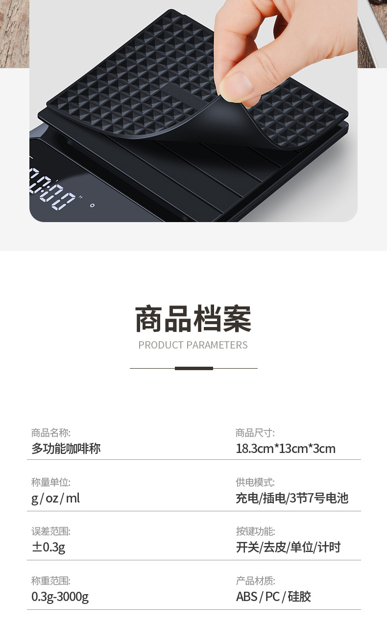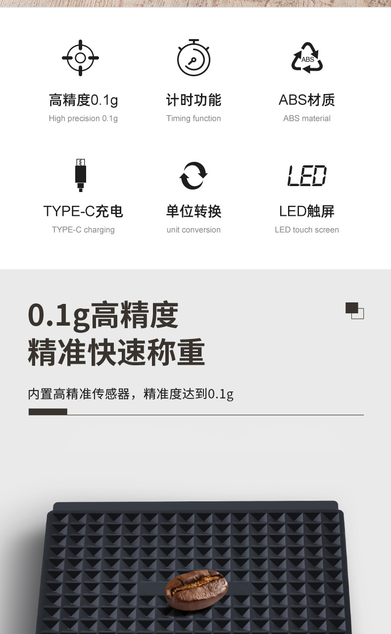 手沖咖啡秤高精度計時家用精準廚房電子秤小型食物烘焙克數稱