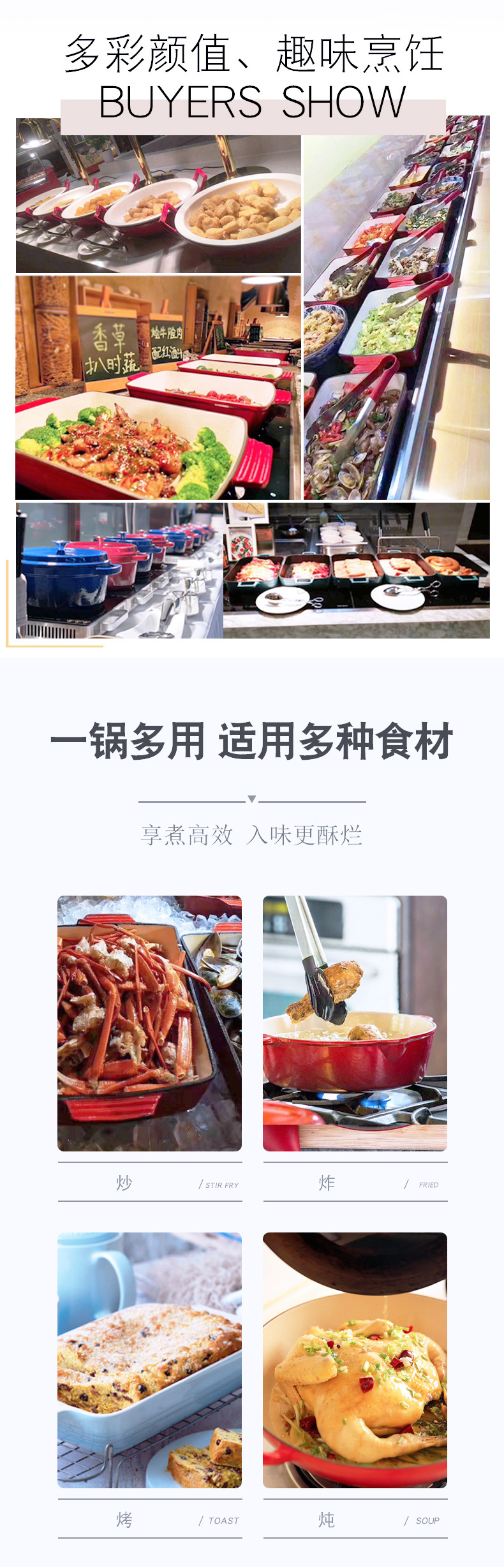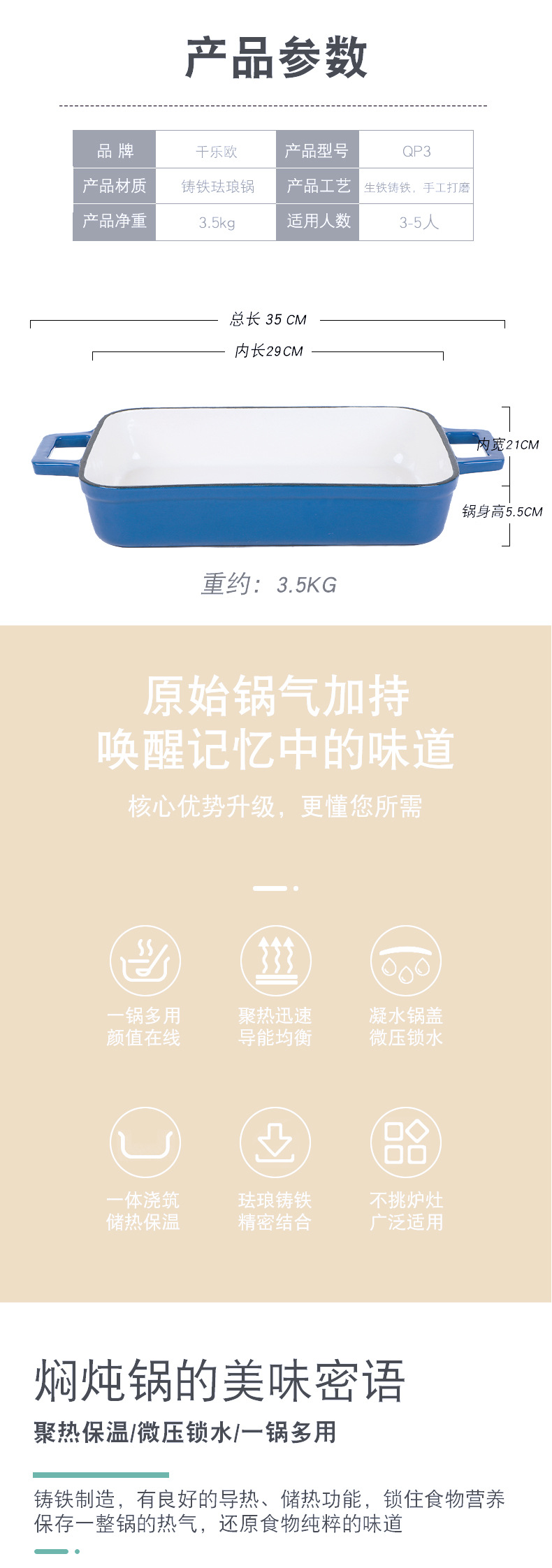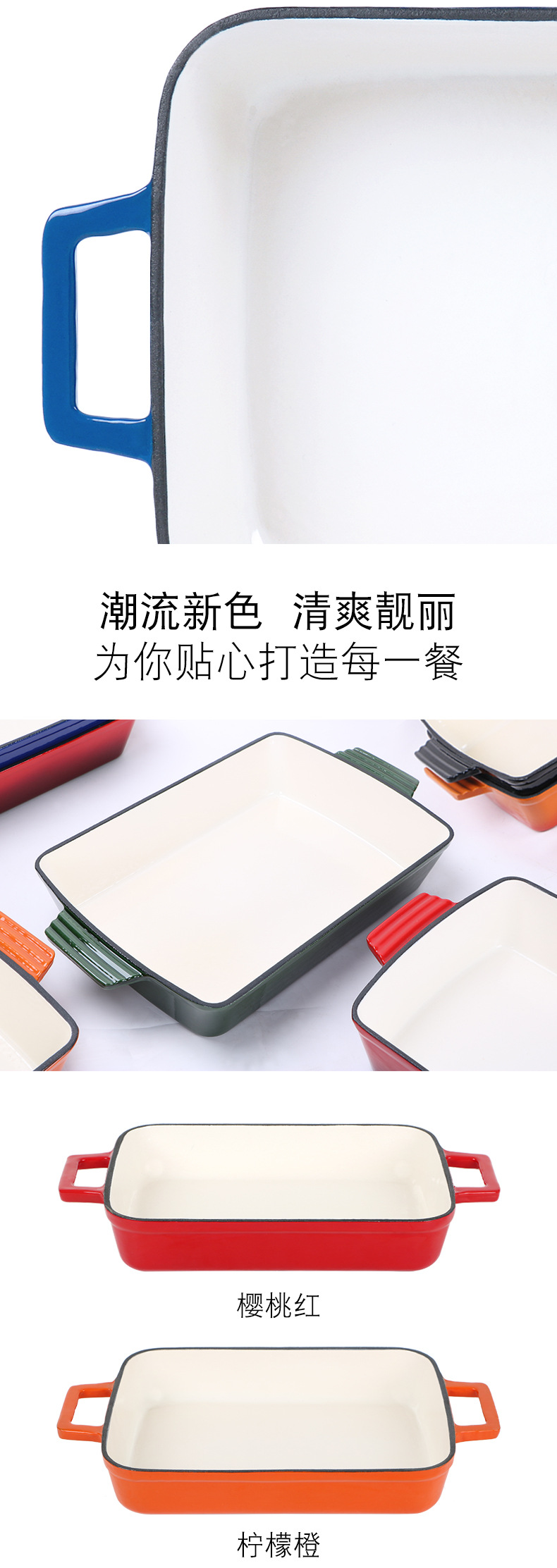 鑄鐵琺瑯盤G33長方形魚盤無塗層不沾鍋套裝淘寶