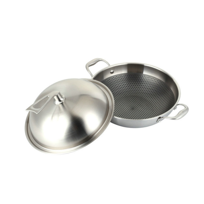 304不鏽鋼炒鍋 無油煙 平底鍋 不沾鍋 電磁爐通用鍋具