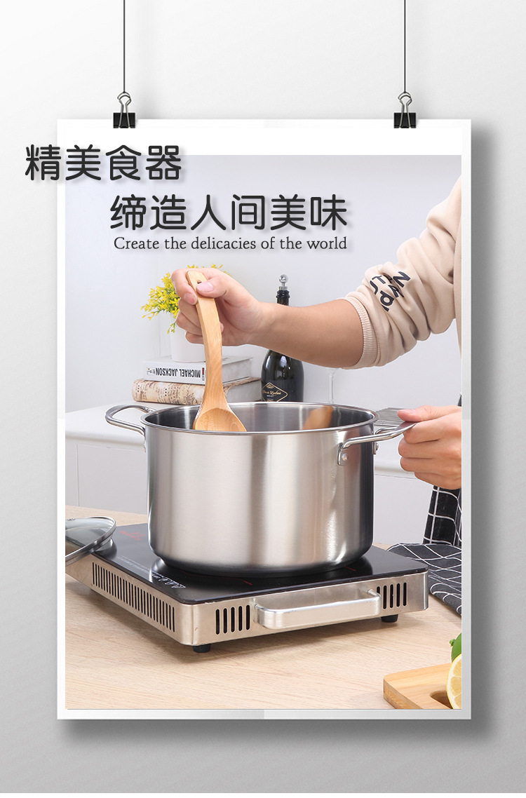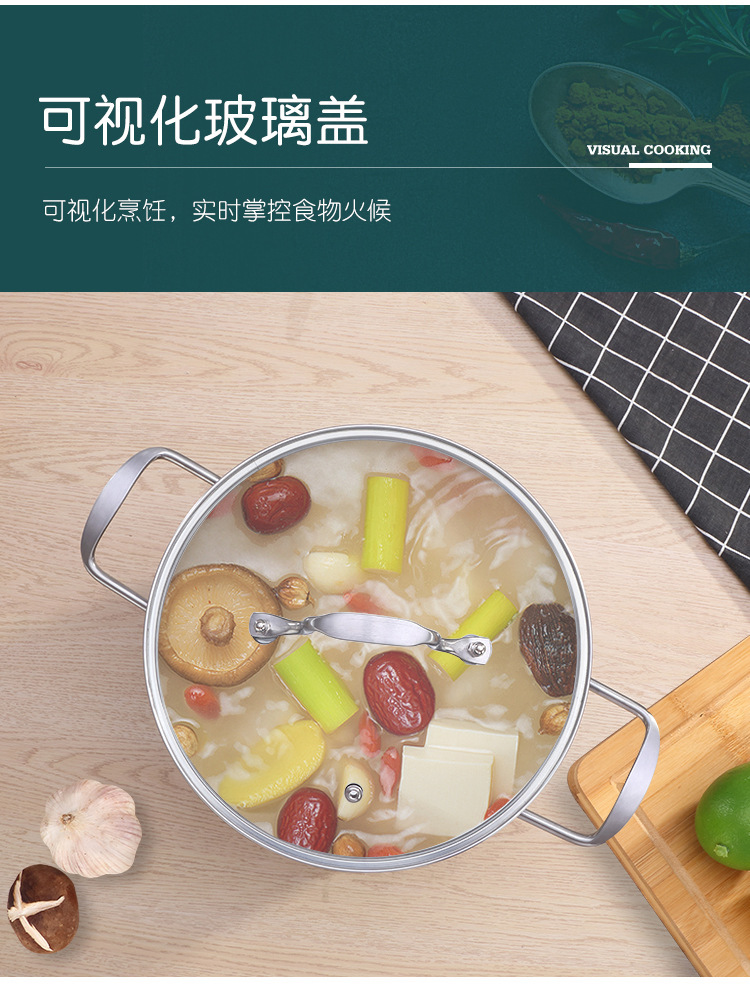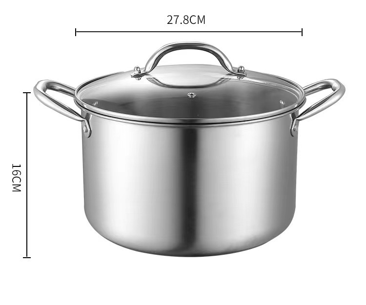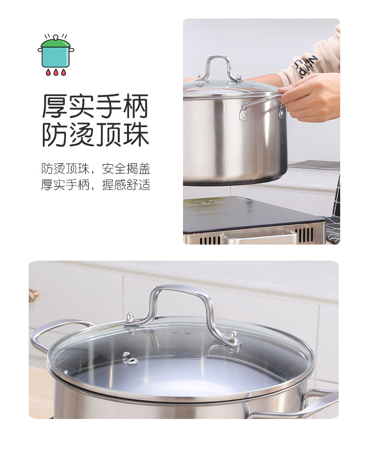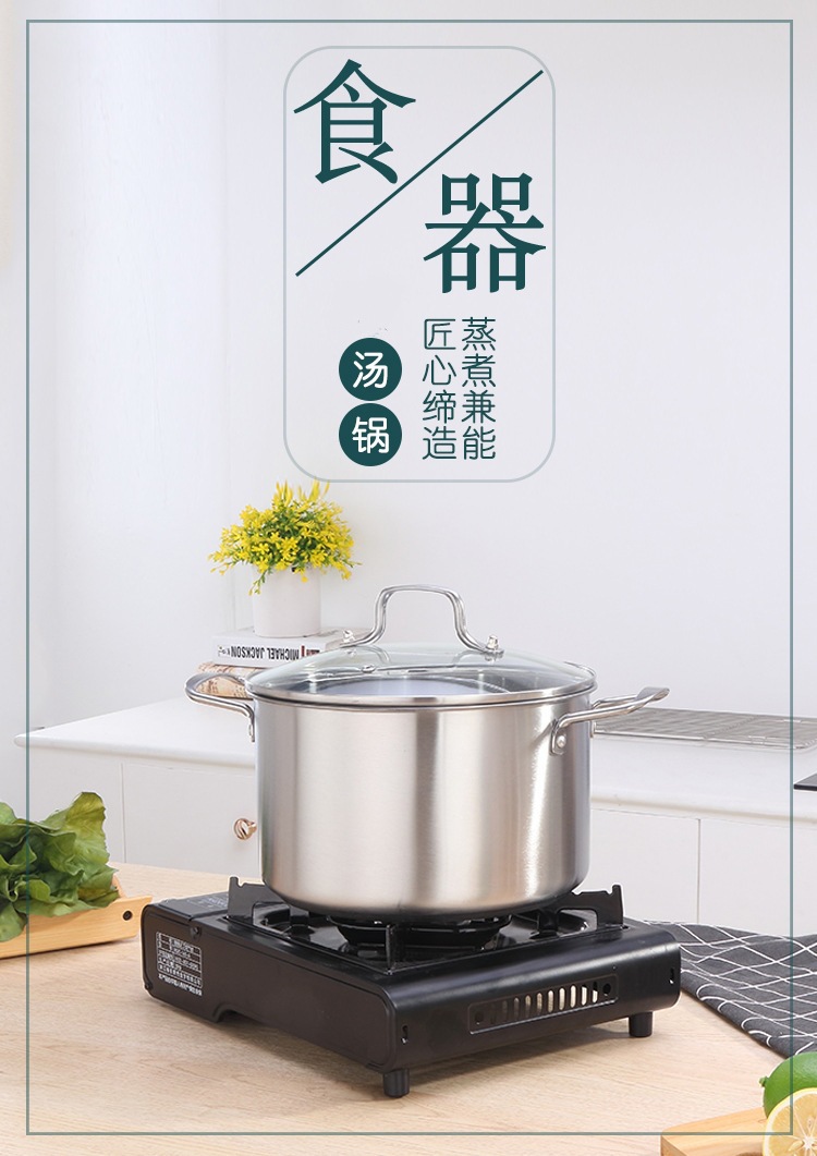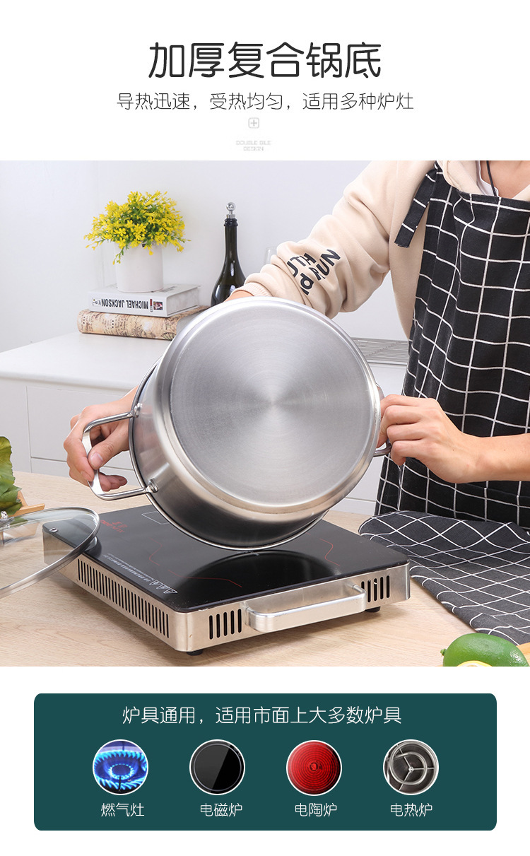 歐式不鏽鋼湯鍋家用大容量加厚平底湯鍋電磁爐禮品雙耳湯蒸鍋