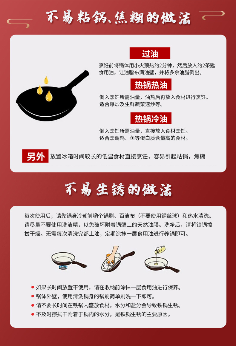 正宗章丘手工鍛打鐵鍋圓底家用炒菜鍋木把禮品光面鍋老式鐵鍋